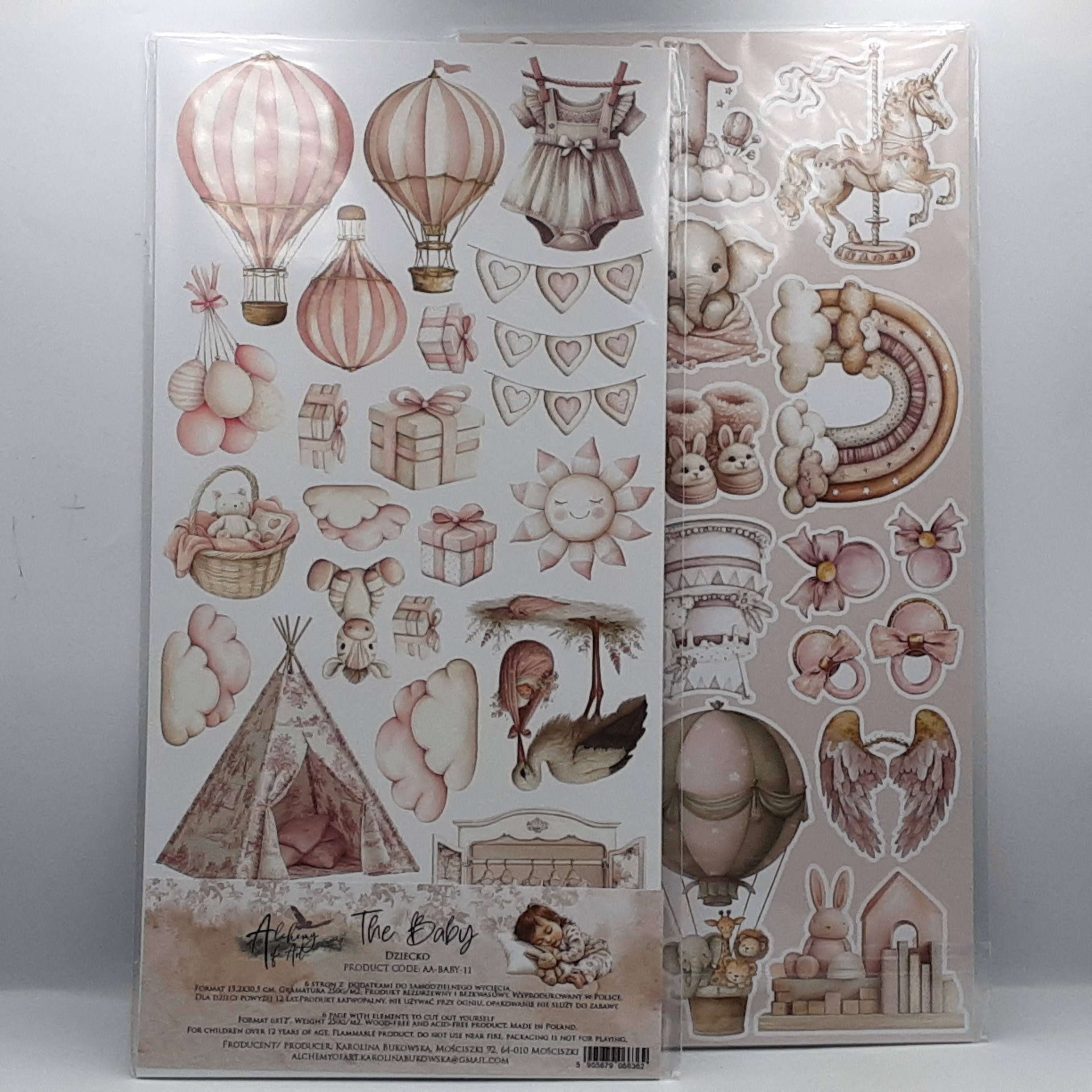 Set van 12 dubbelzijdig bedrukte vellen designpapier voor baby kaarten , in roze en blauw 20 x 20 cm