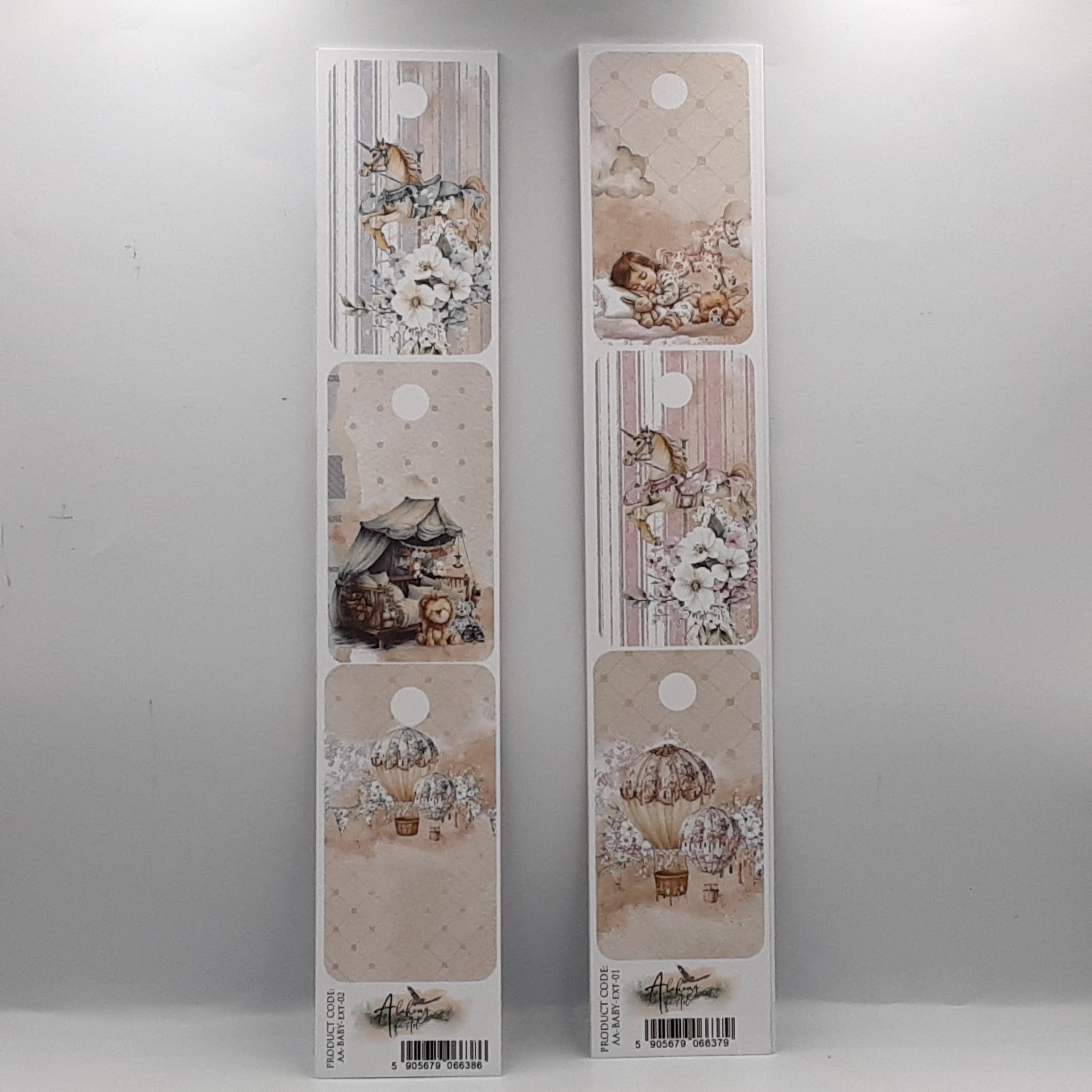Knipvel 15 x 30 cm met aan de ene zijde baby plaatjes en aan de andere zijde designpapier