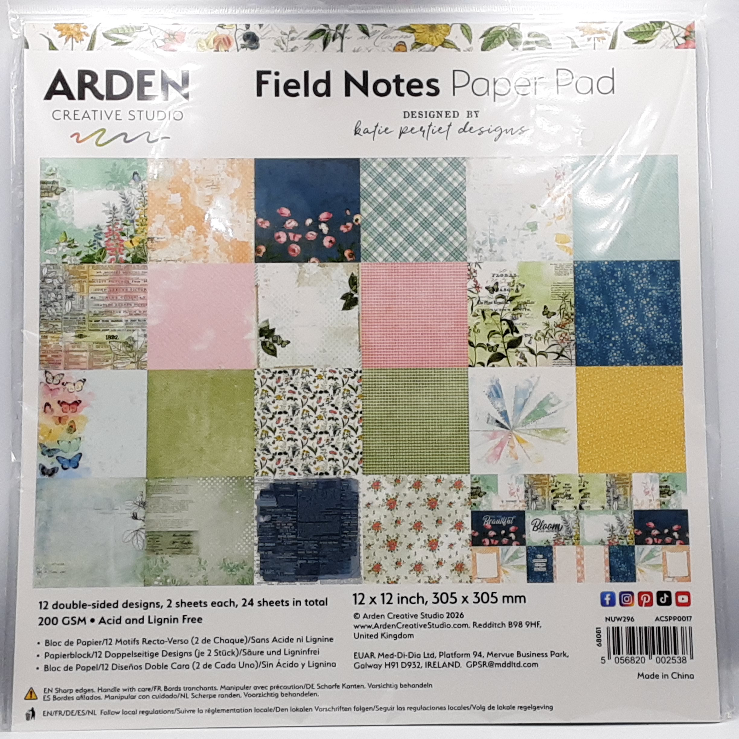 Paperpad met achtergrond papier in vrolijke kleuren, bloemen en vlinders, 12x2 dubbelzijdig bedrukt op formaat 30,5x30,5cm