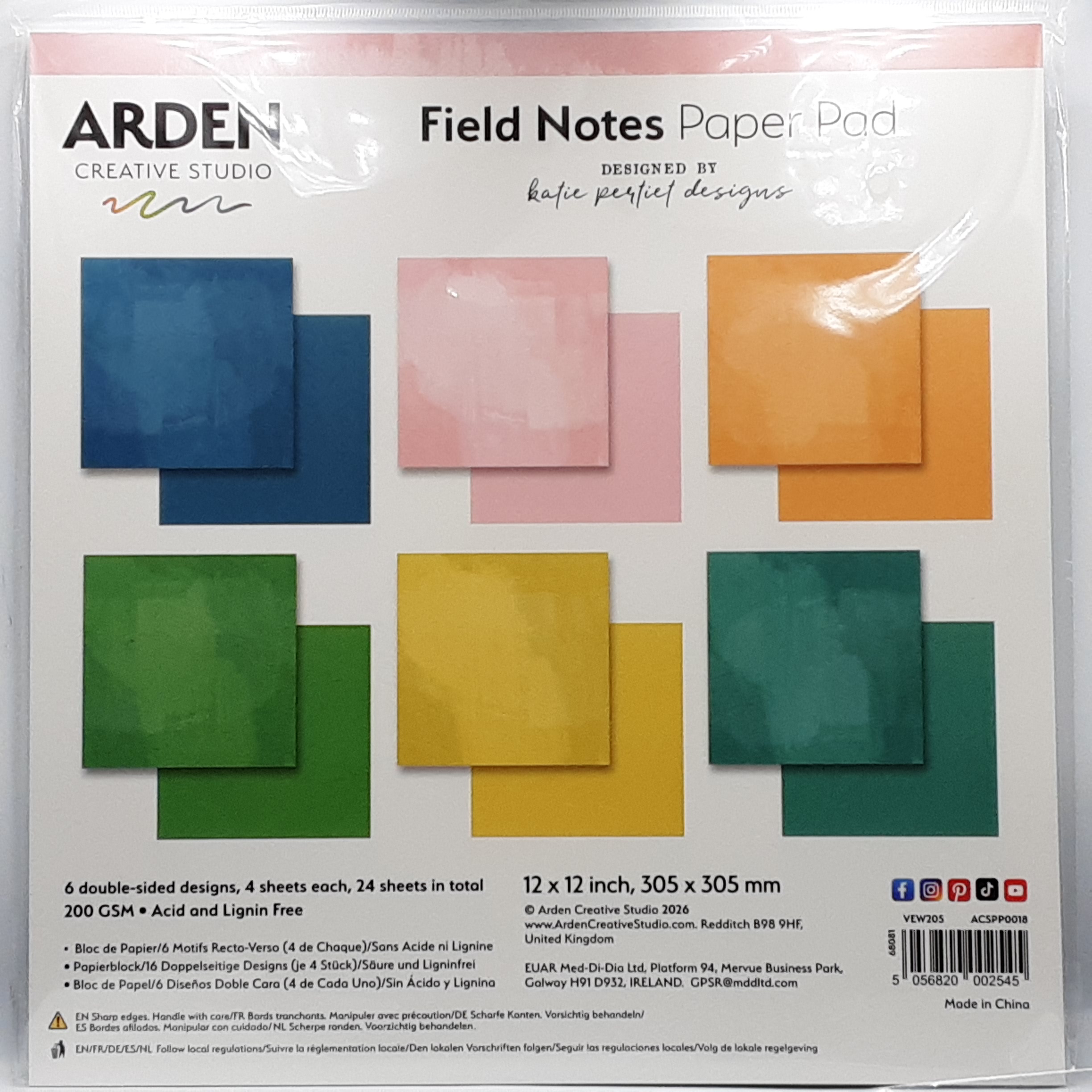 Paperpad met effen kleuren 6x4 vellen dubbelzijdig bedrukt passend bij de collectie, formaat 30,5x30,5cm