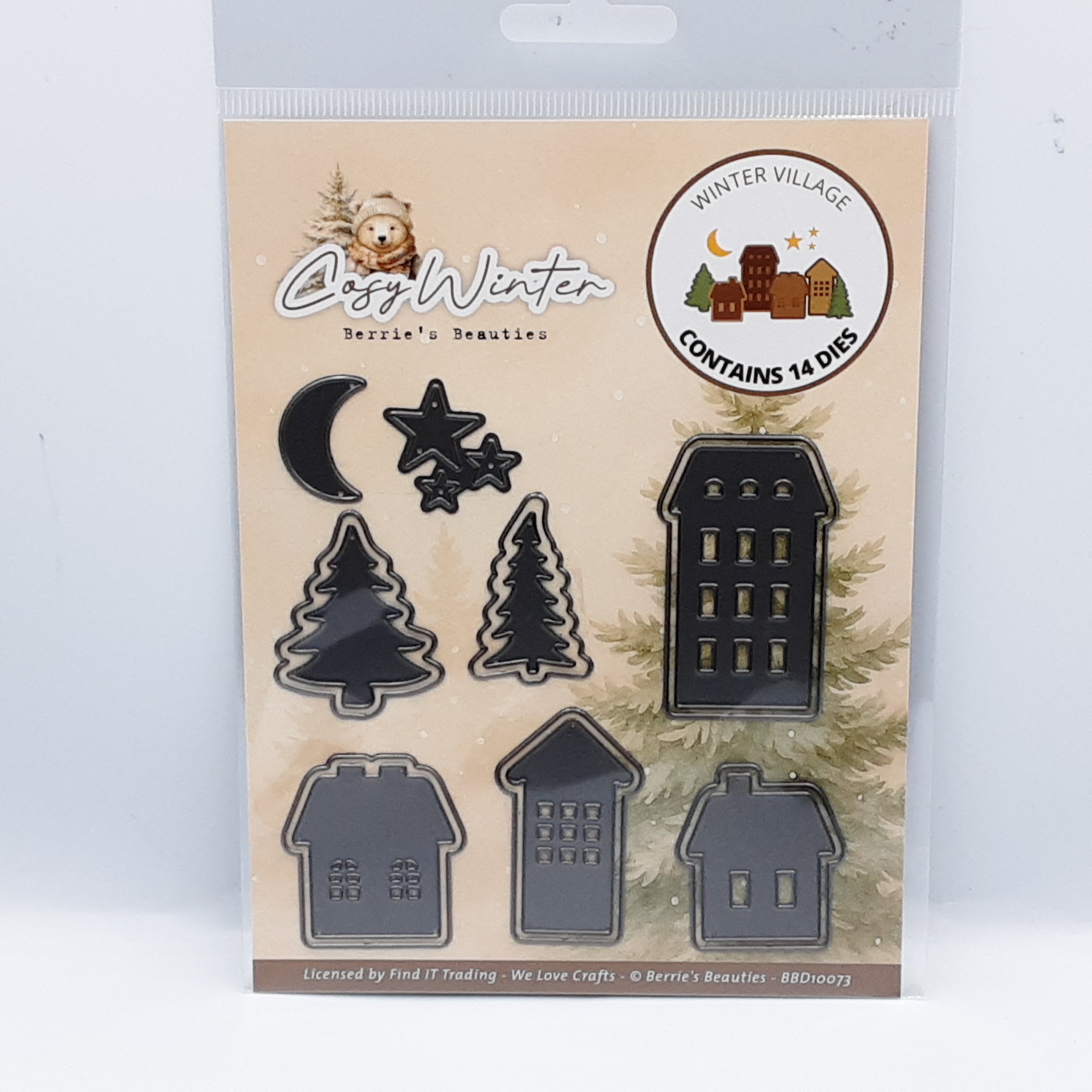 Set stansmallen met huisjes , boompjes , de maan en sterren , om een heel dorpje te bouwen
