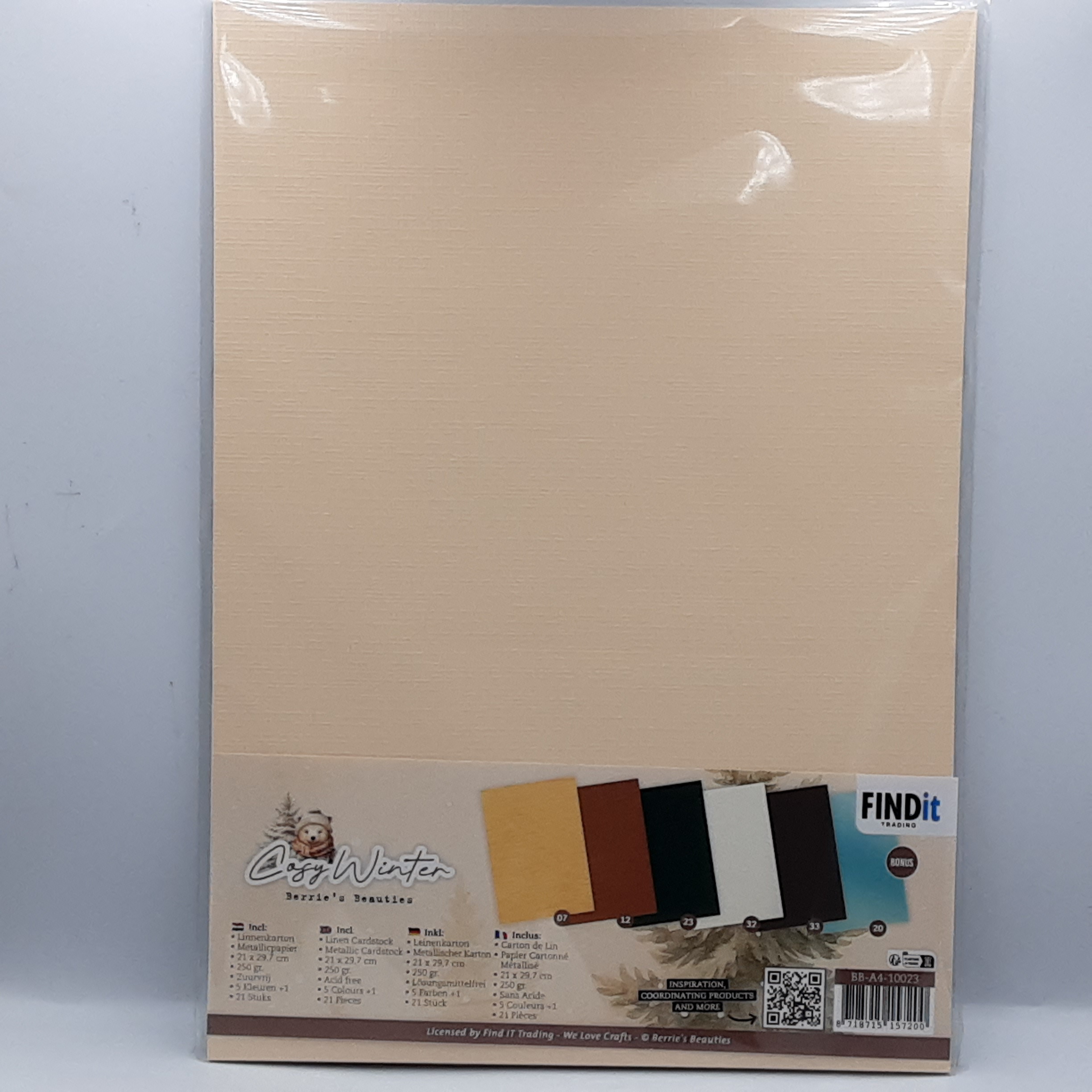 21 vel A4 karton , 4x5 kleuren linnen en 1 metallic , passend bij de collectie cosy winter
