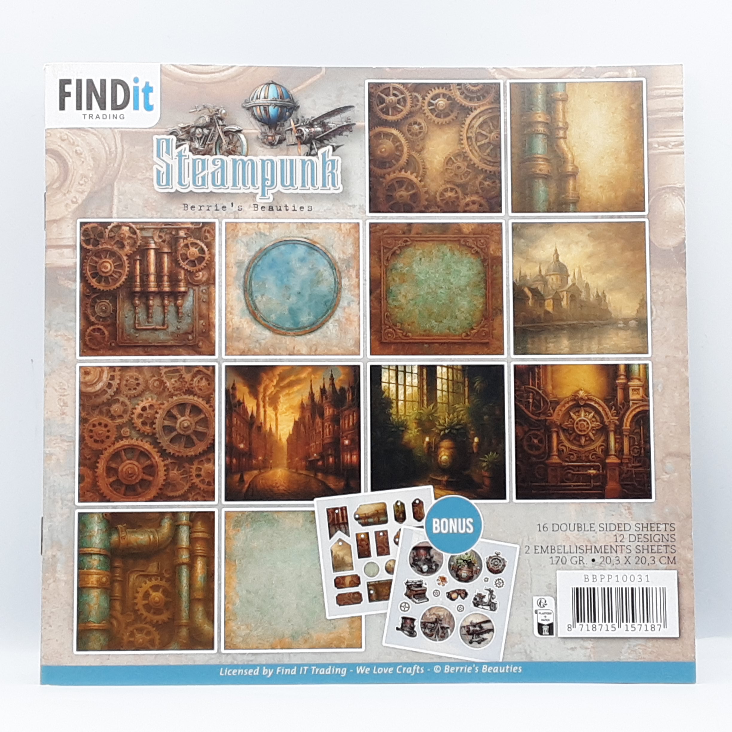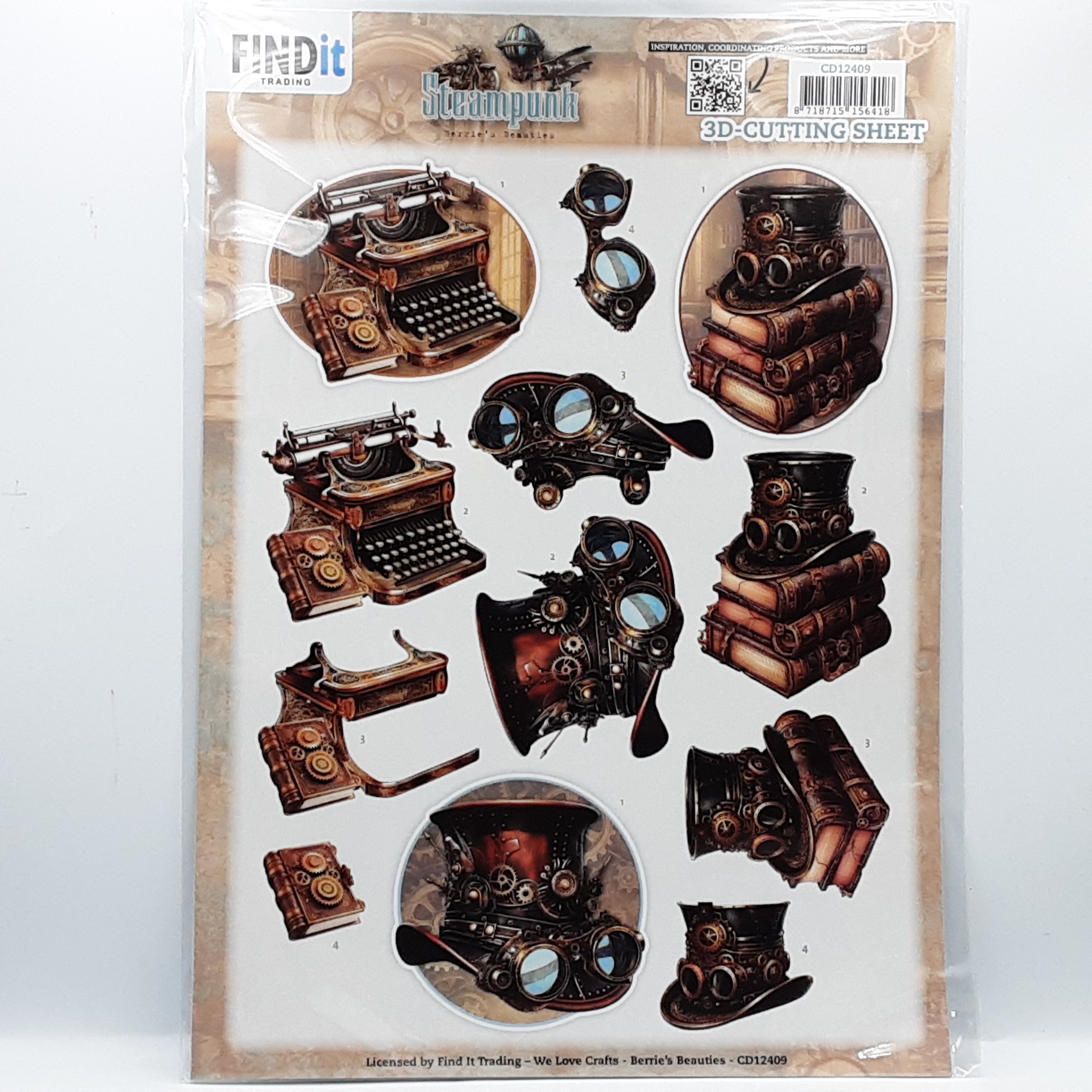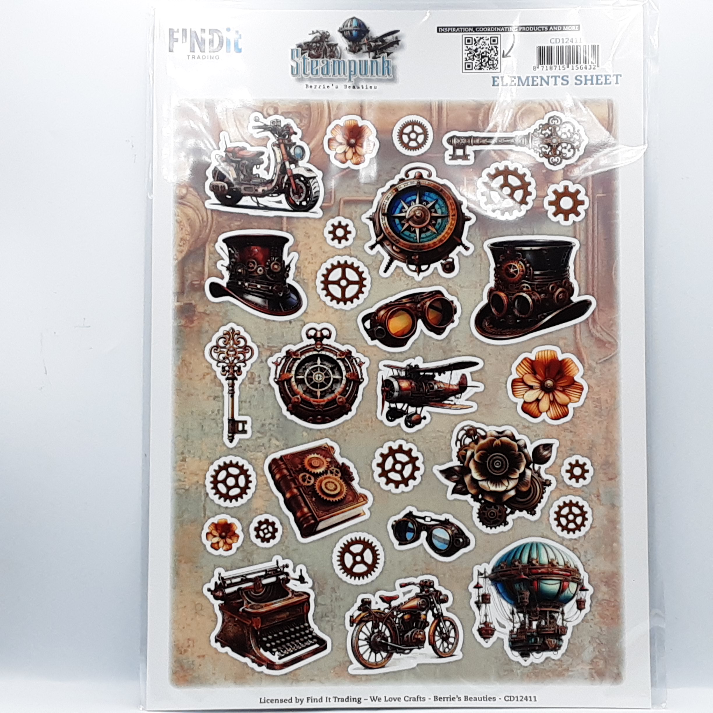 Knipvel met steampunk plaatjes van objecten, ook verkrijgbaar in push out