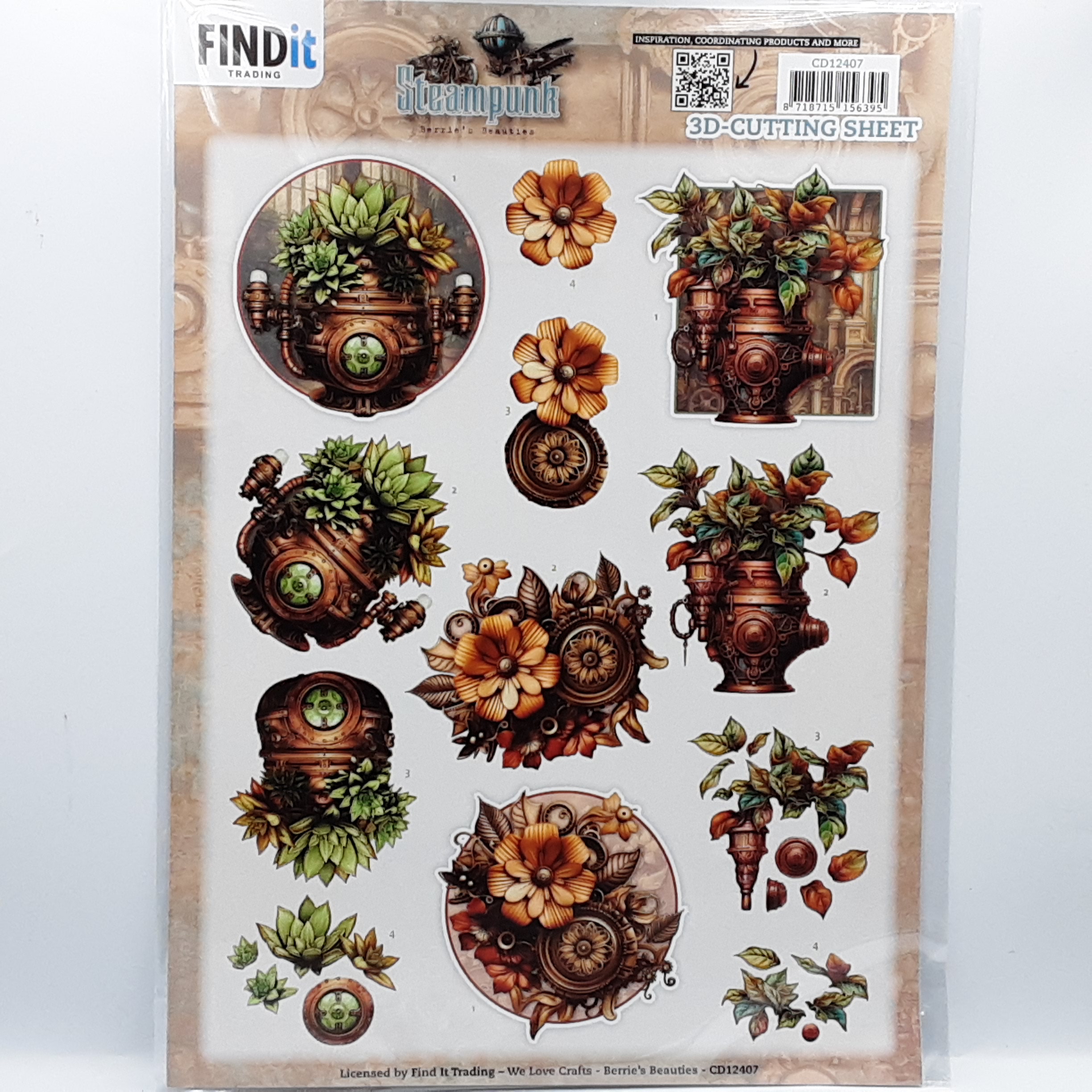 Knipvel met steampunk plaatjes van planten, ook verkrijgbaar in push out