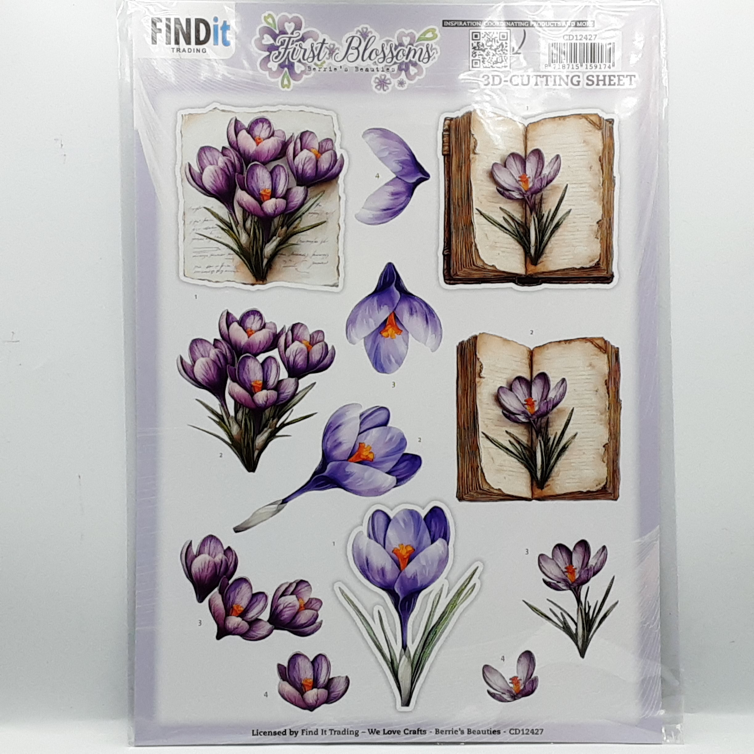 Knipvel met 3 plaatjes om in 3D op te bouwen , Ook verkrijgbaar in push out Paarse krokussen