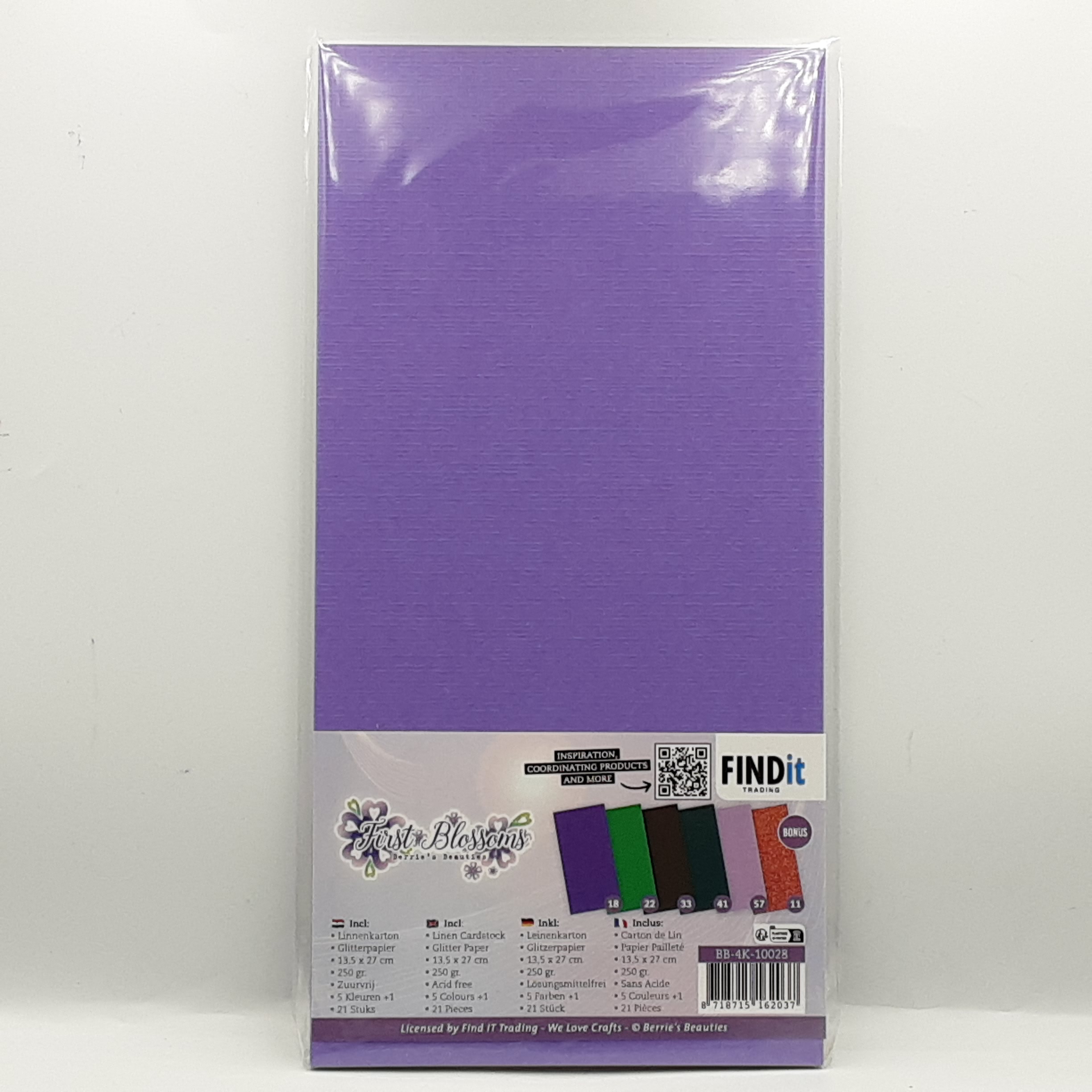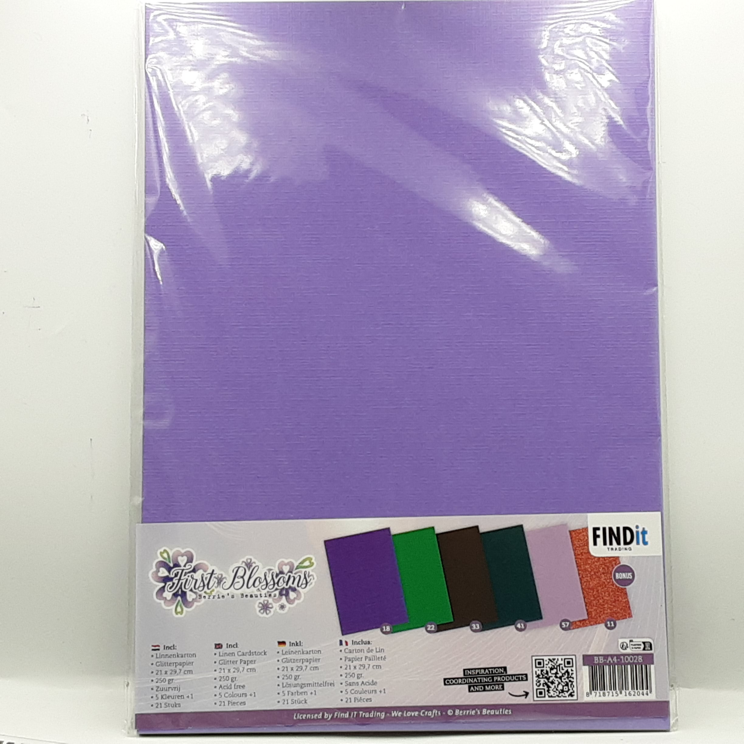 Pakket met 21 vel A4 karton, 5 kleuren linnen en 1 vel glitterkarton