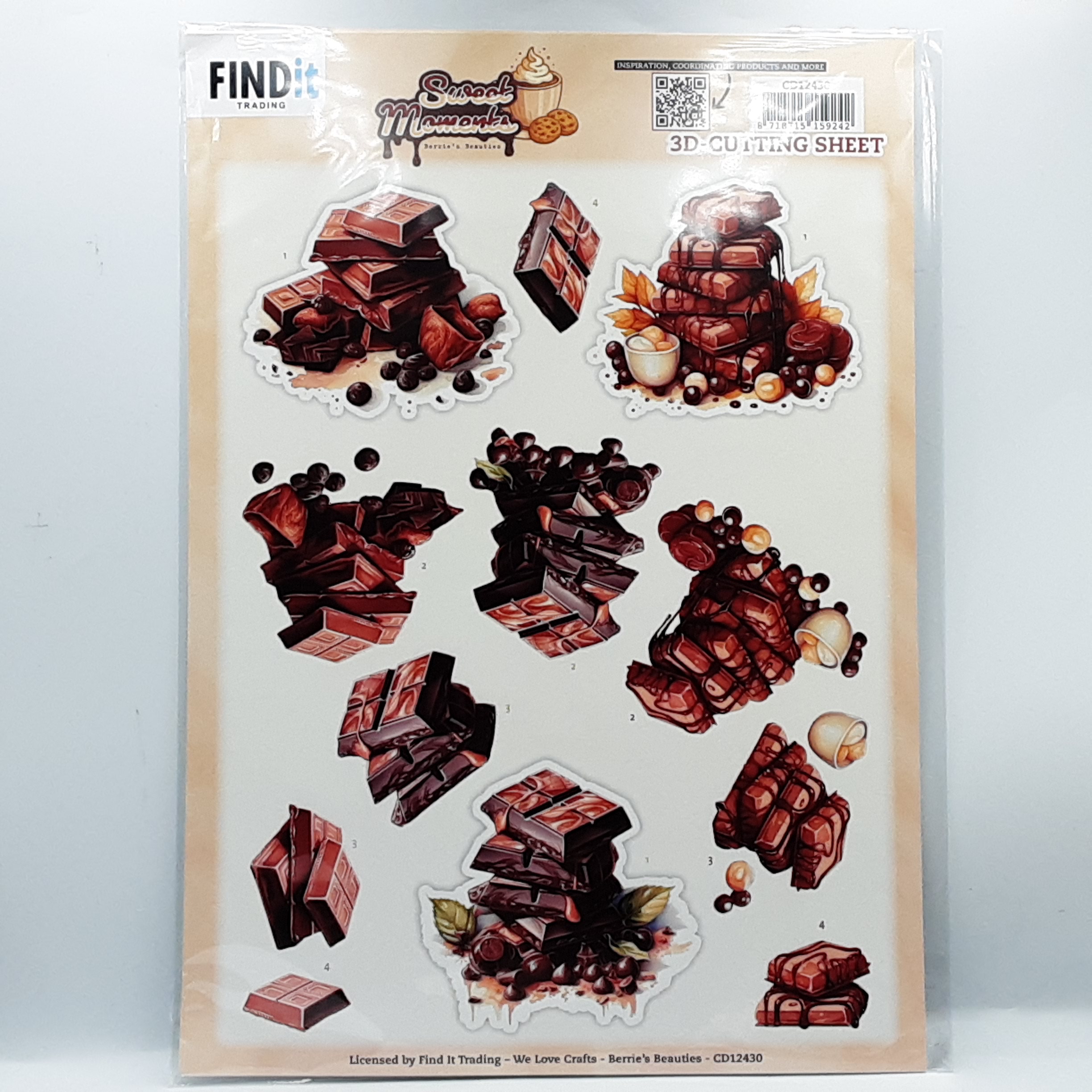 Knipvel met luxe chocolade repen, ook verkrijgbaar in push out vel