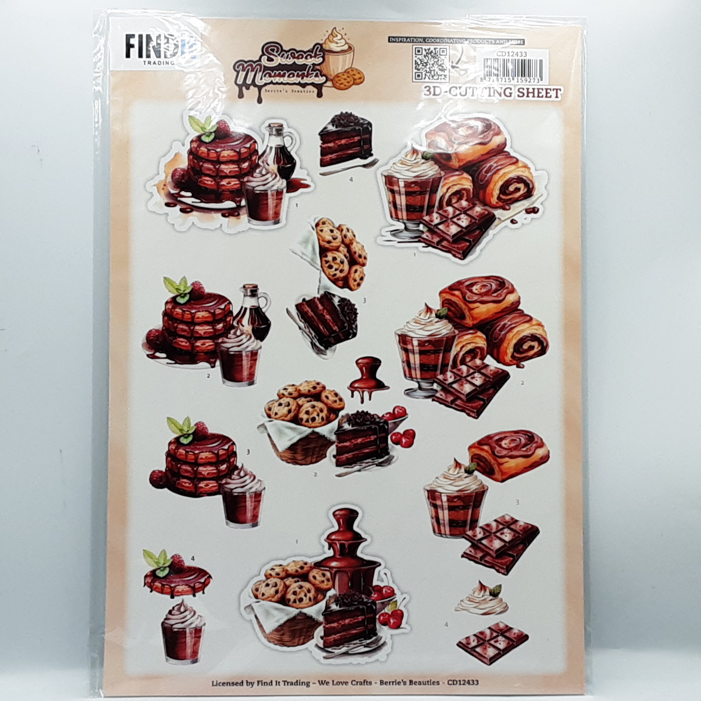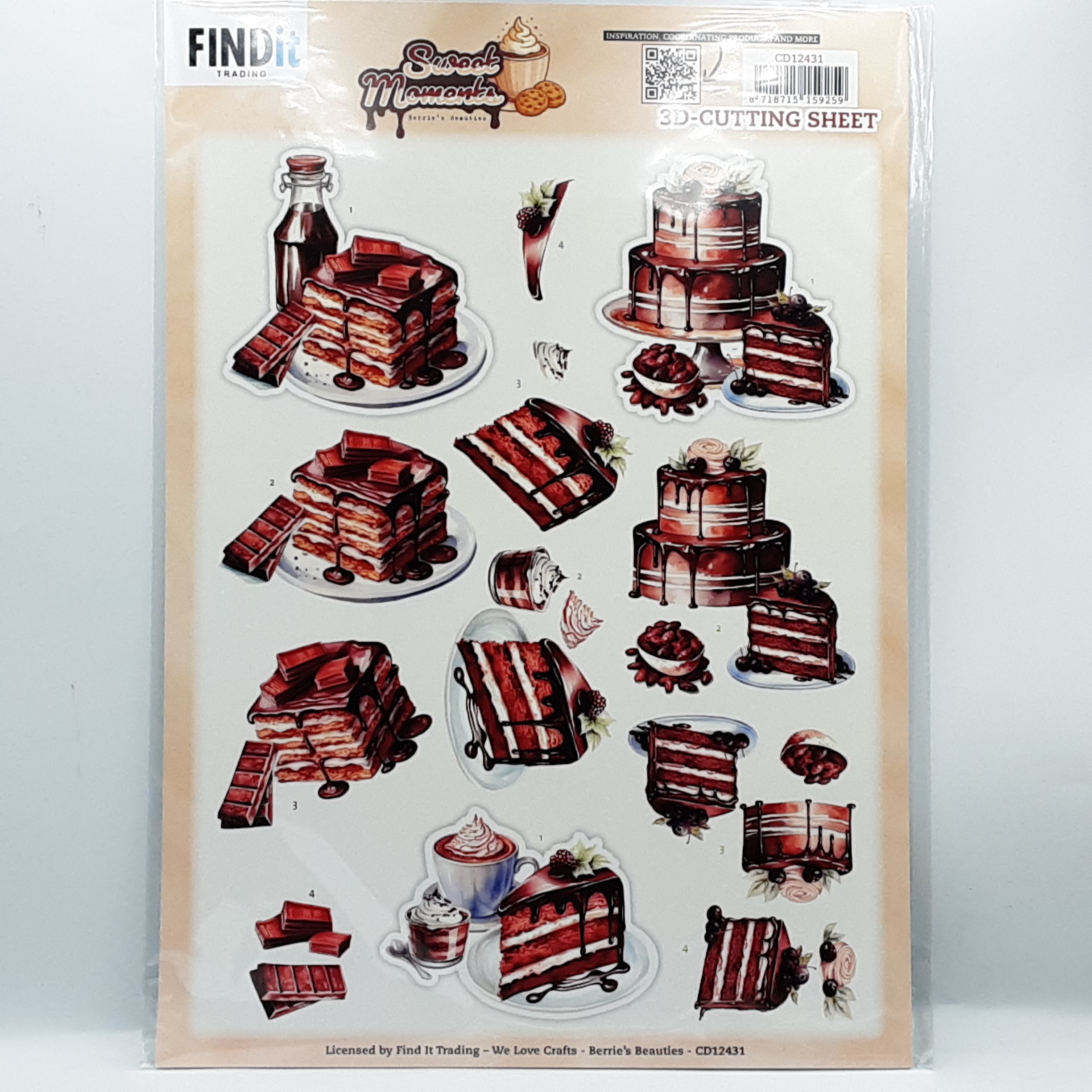 Knipvel met luxe chocoladetaarten, ook verkrijgbaar in push out vel