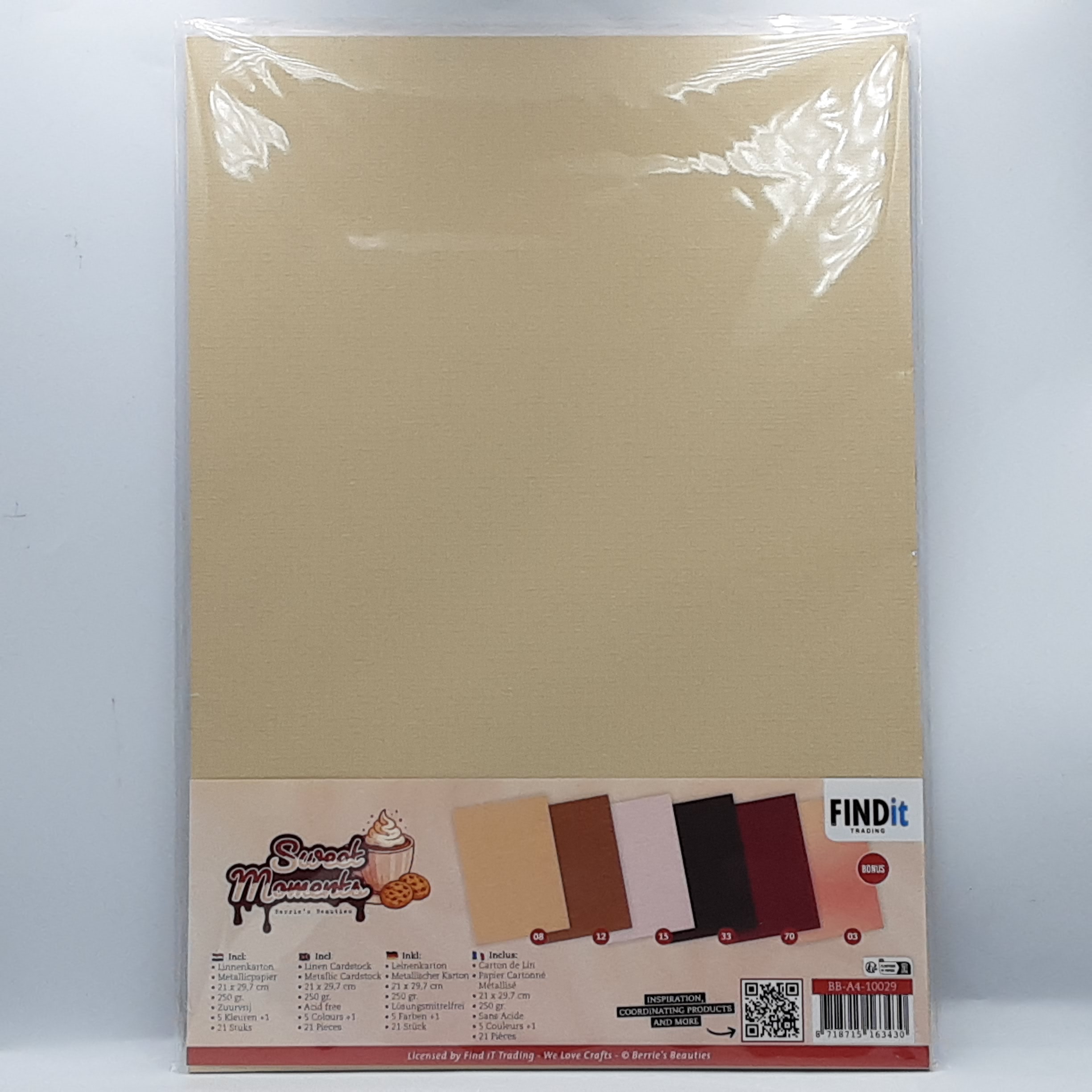 Pakket met linnen karton in 5 kleuren met 1 bonus vel metallic karton, passend bij de collectie op A4 formaat