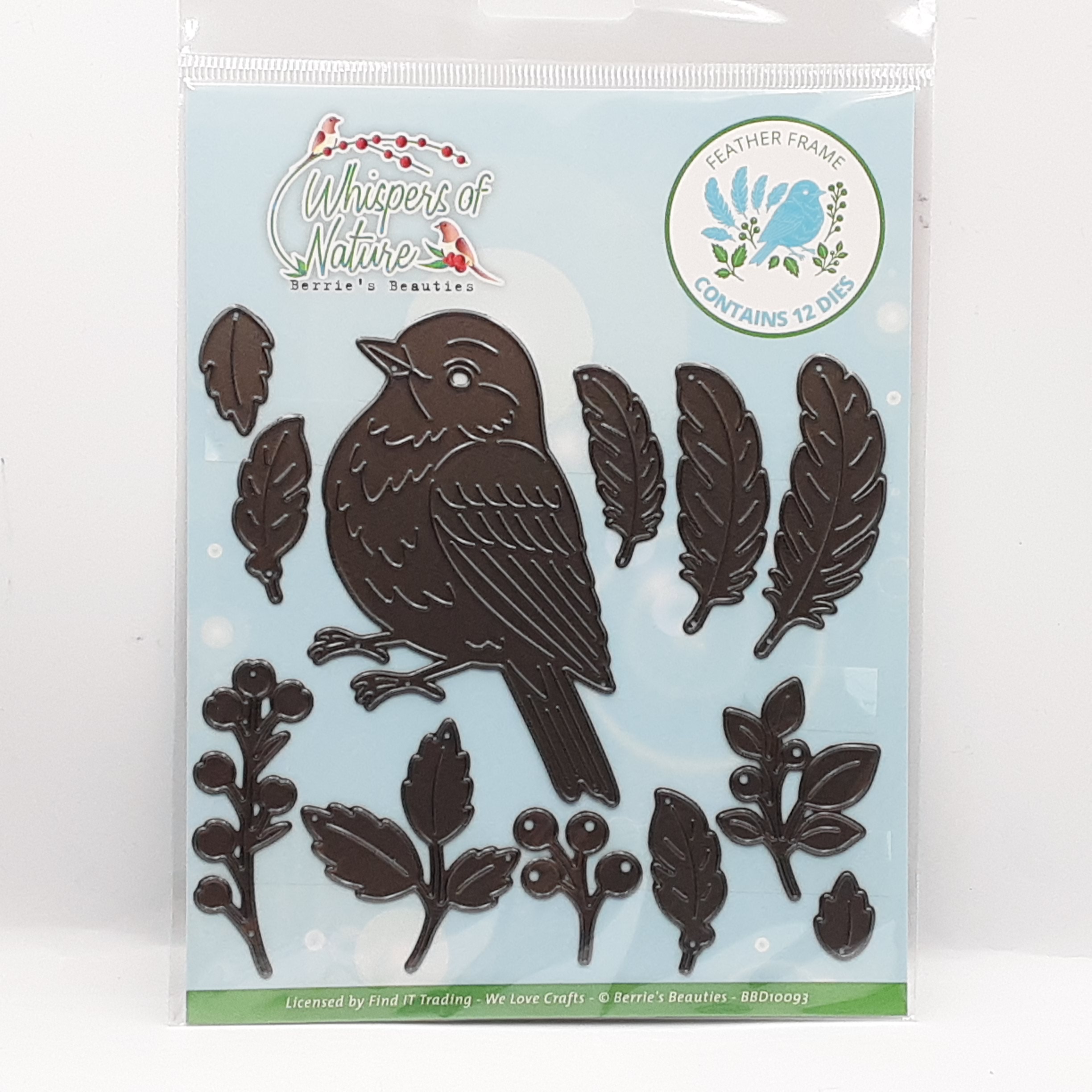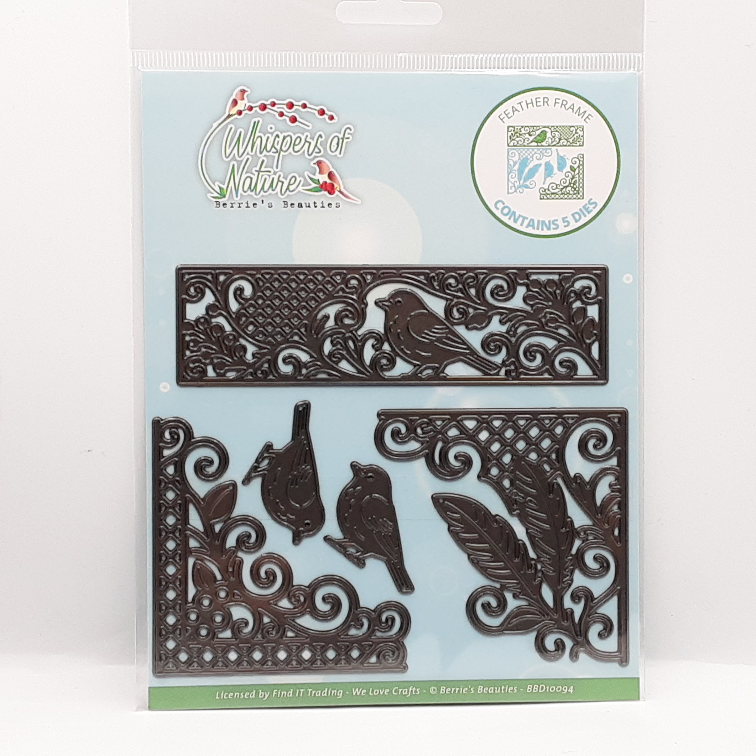 Stansmal van een sierlijk rechthoekig frame en 2 hoekframes met losse vogeltjes