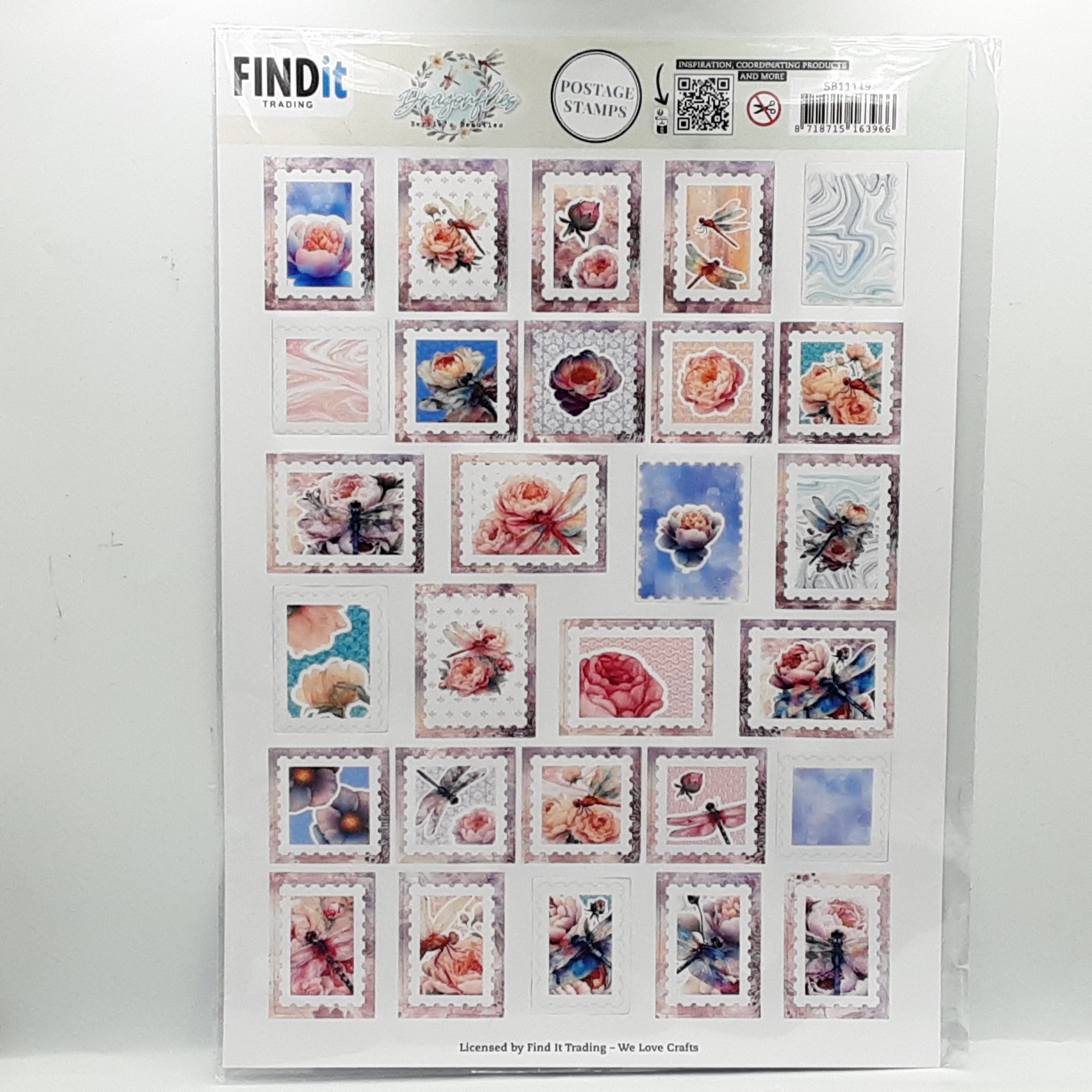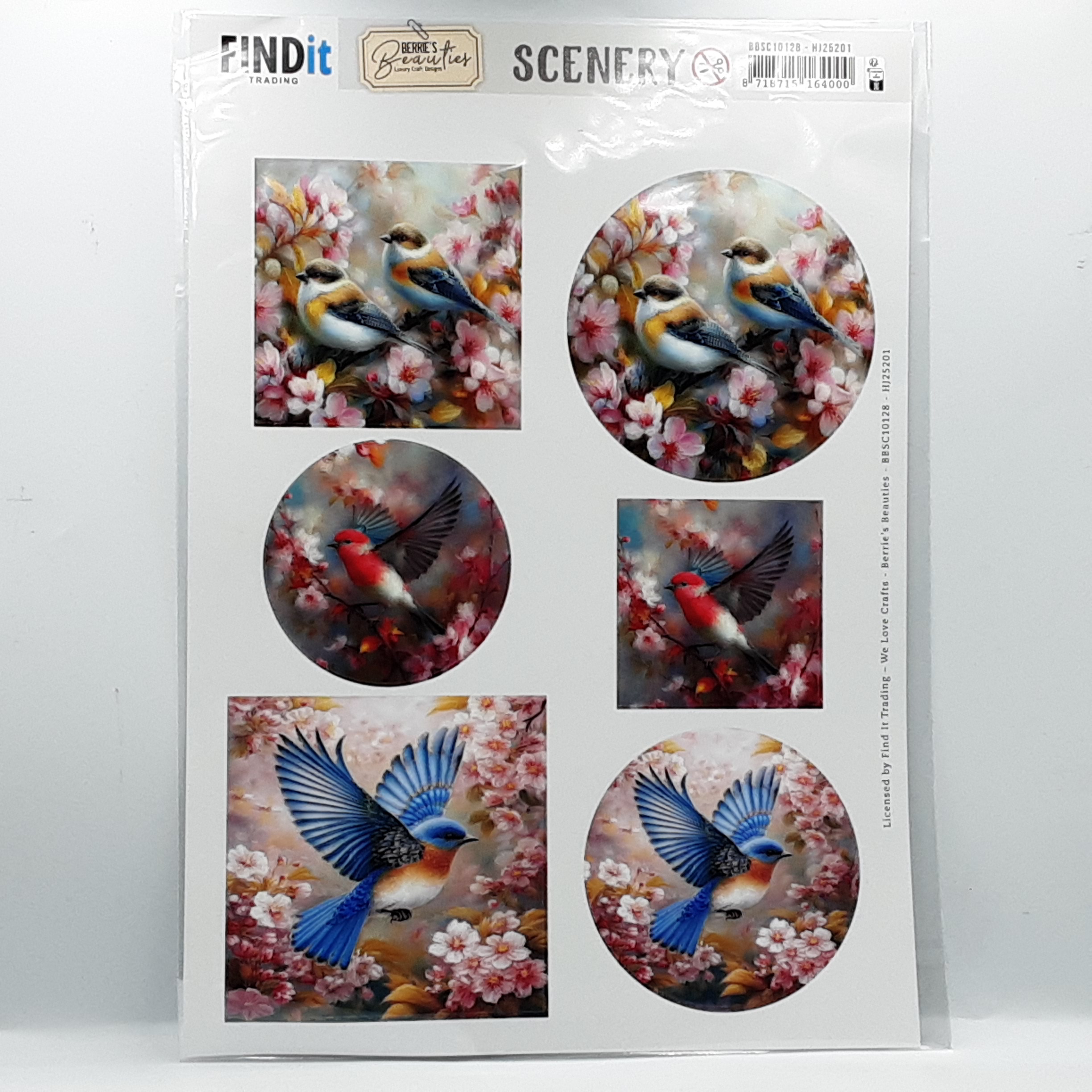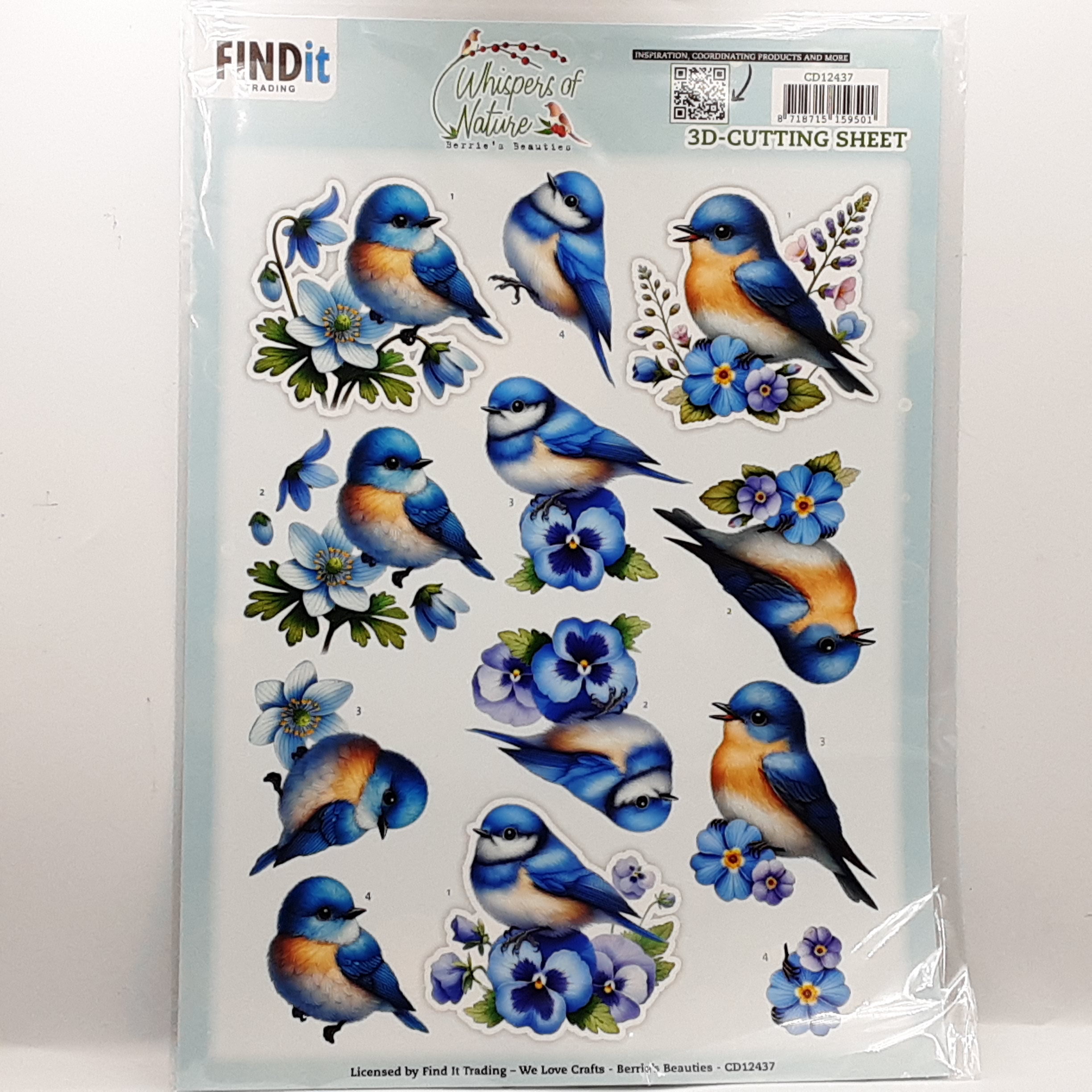 Knipvel met bloemen en libelles in blauwe tinten, ook verkrijgbaar in push out
