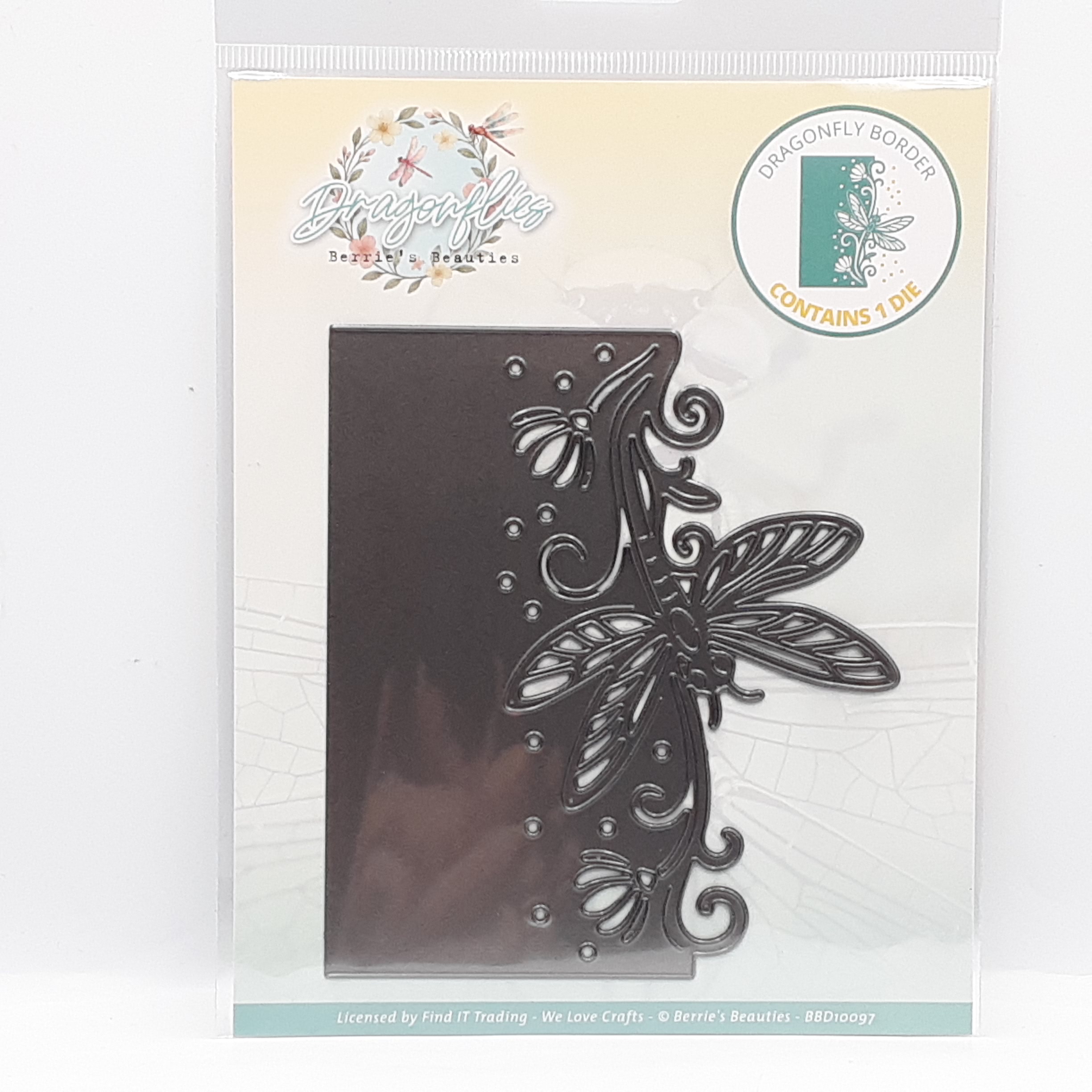 Embossing folder van een rand met libelles en vlinders om reliƫf aan te brengen in je kaart
