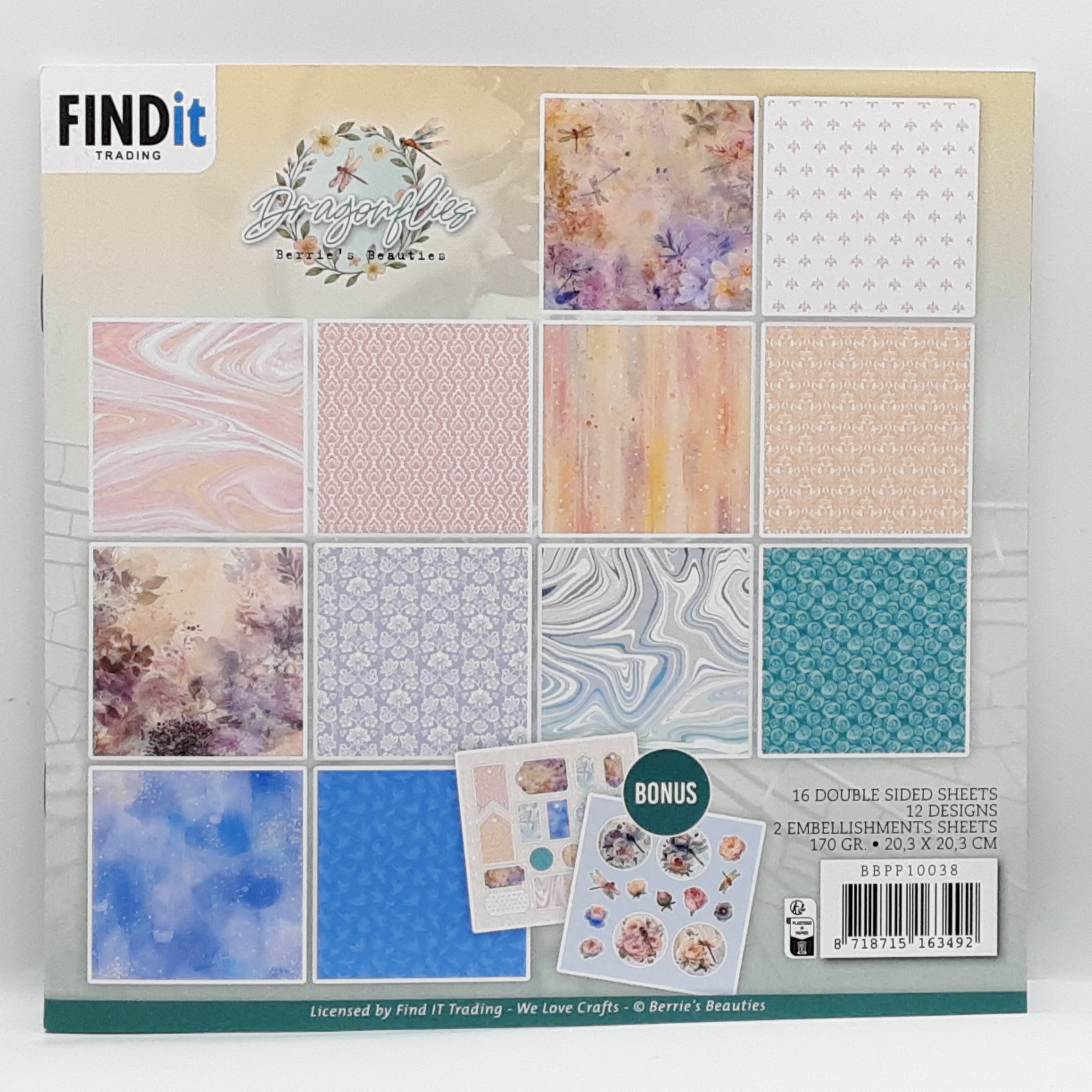 Mooi paperpad met voorjaars printjes en passende kleuren bij de collectie 16 dubbelzijdige vellen en 2 vellen met plaatjes om uit te knippen