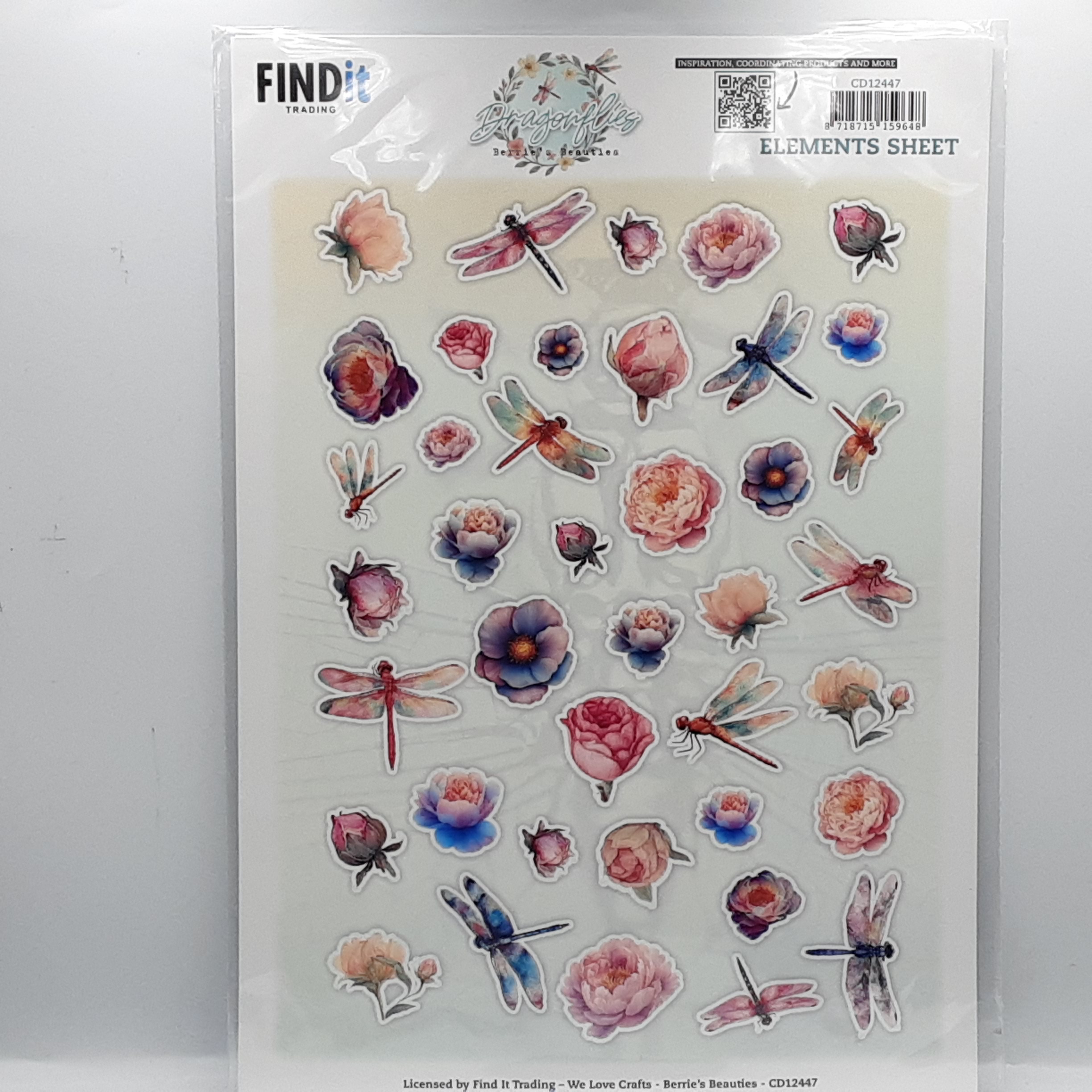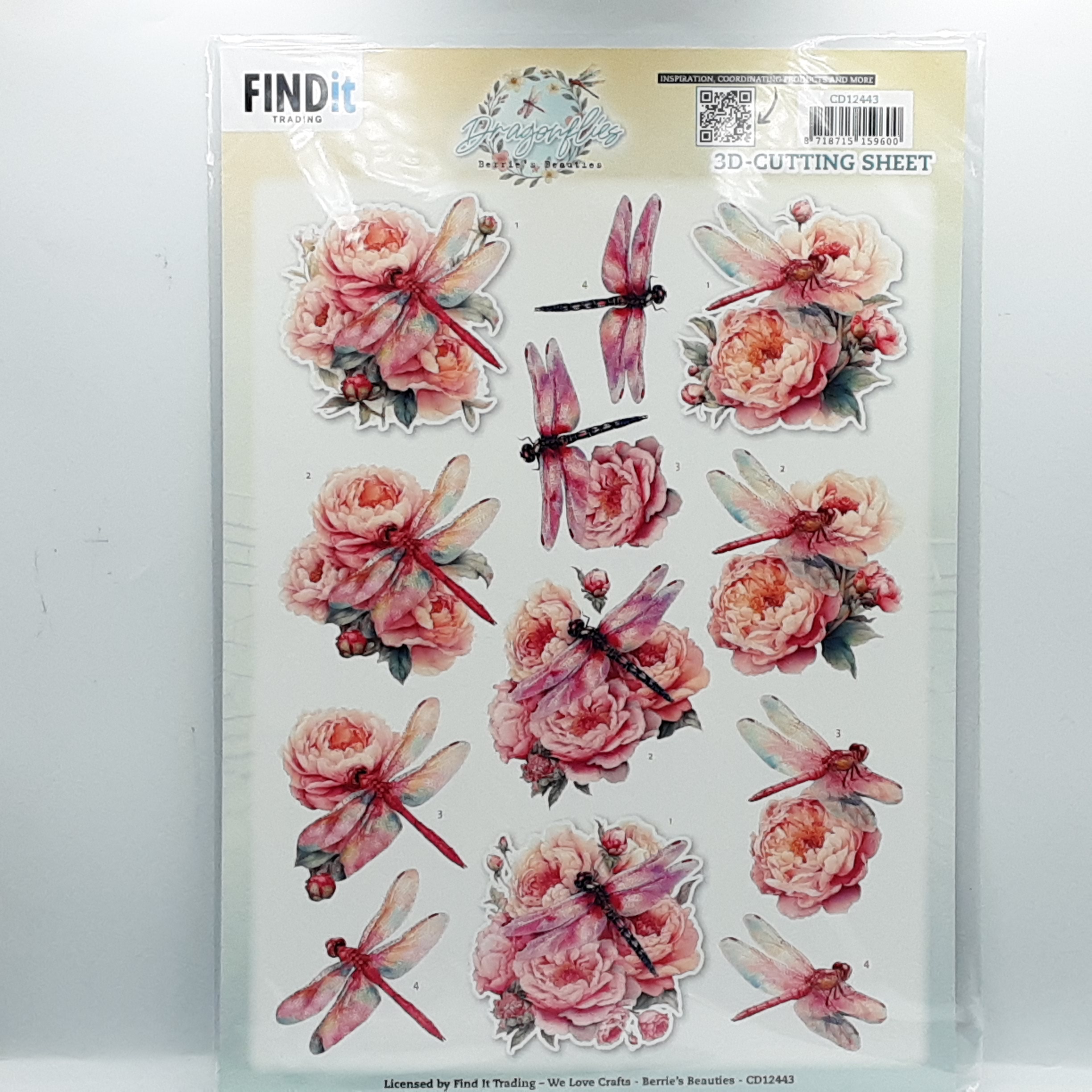 Knipvel met bloemen en libelles in roze tinten, ook verkrijgbaar in push out