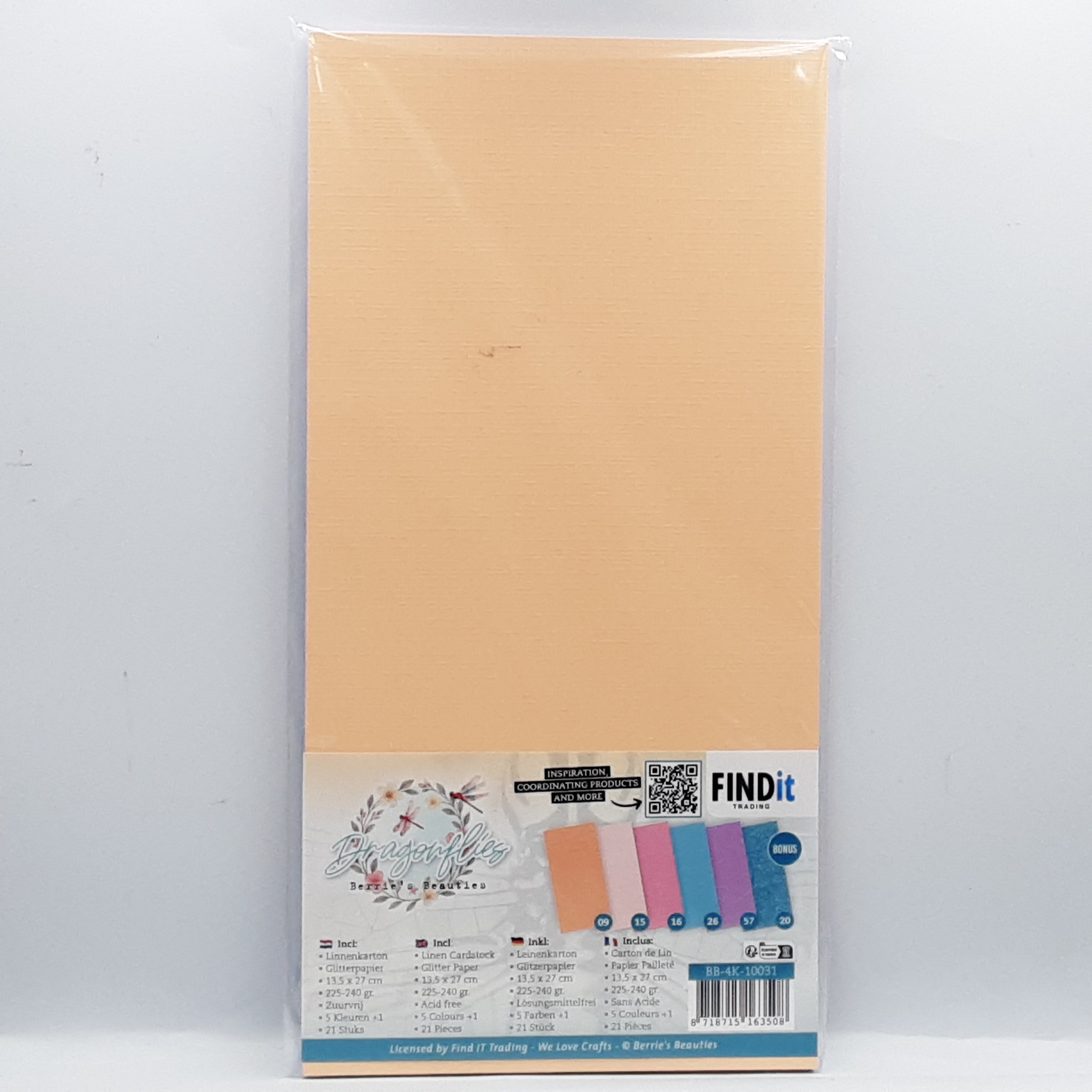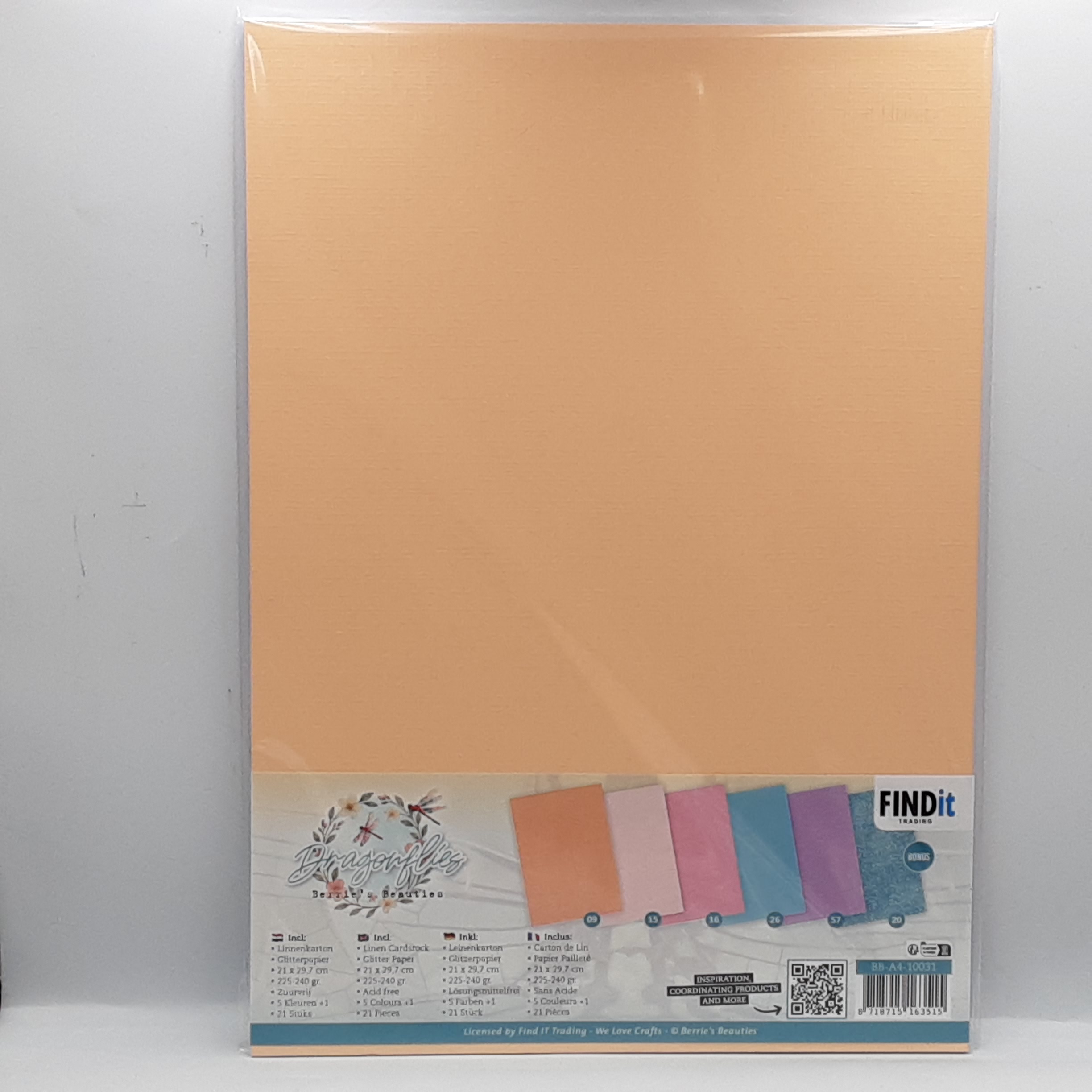 Pakket met linnen karton in 5 kleuren met 1 bonus vel glitter karton, passend bij de collectie op A4 formaat