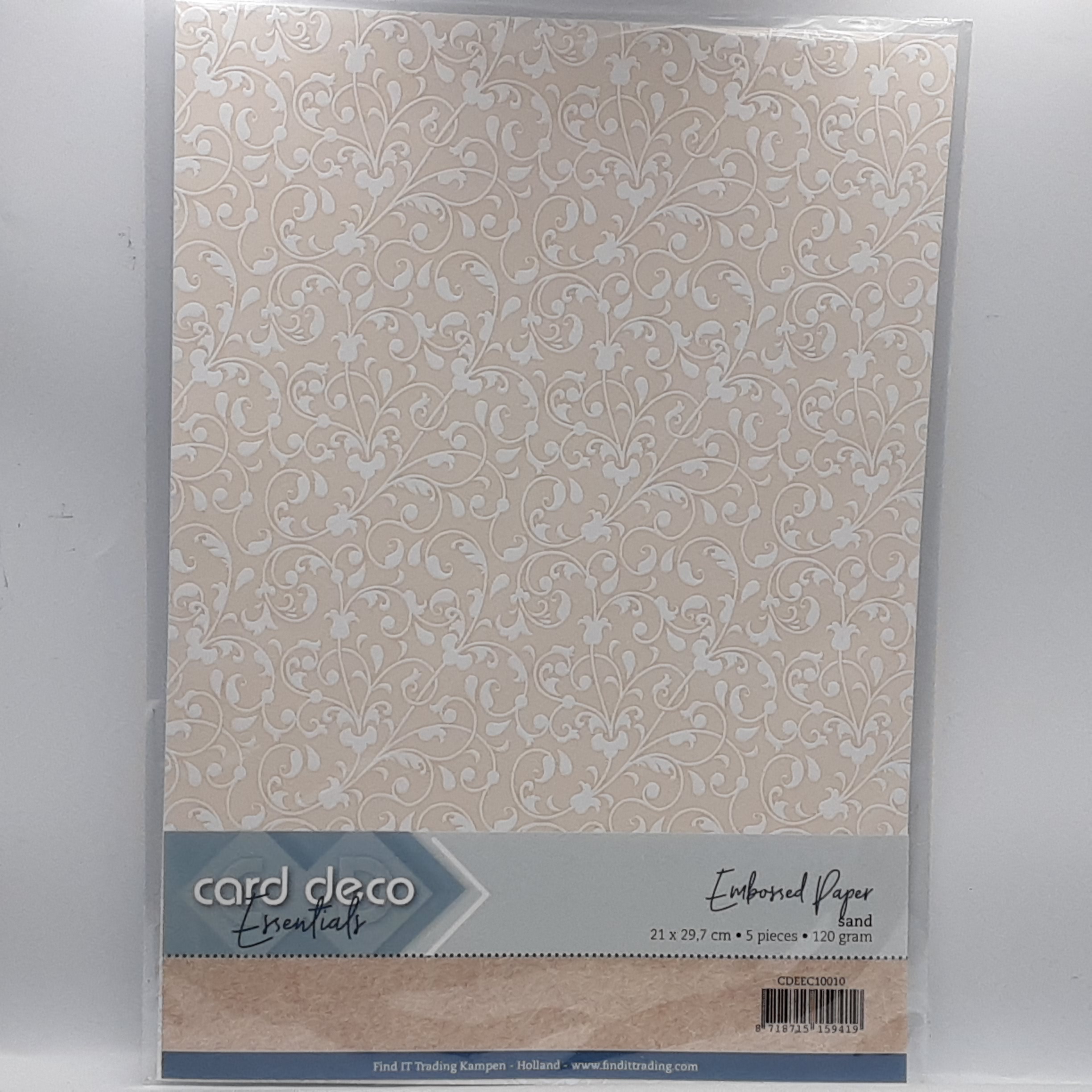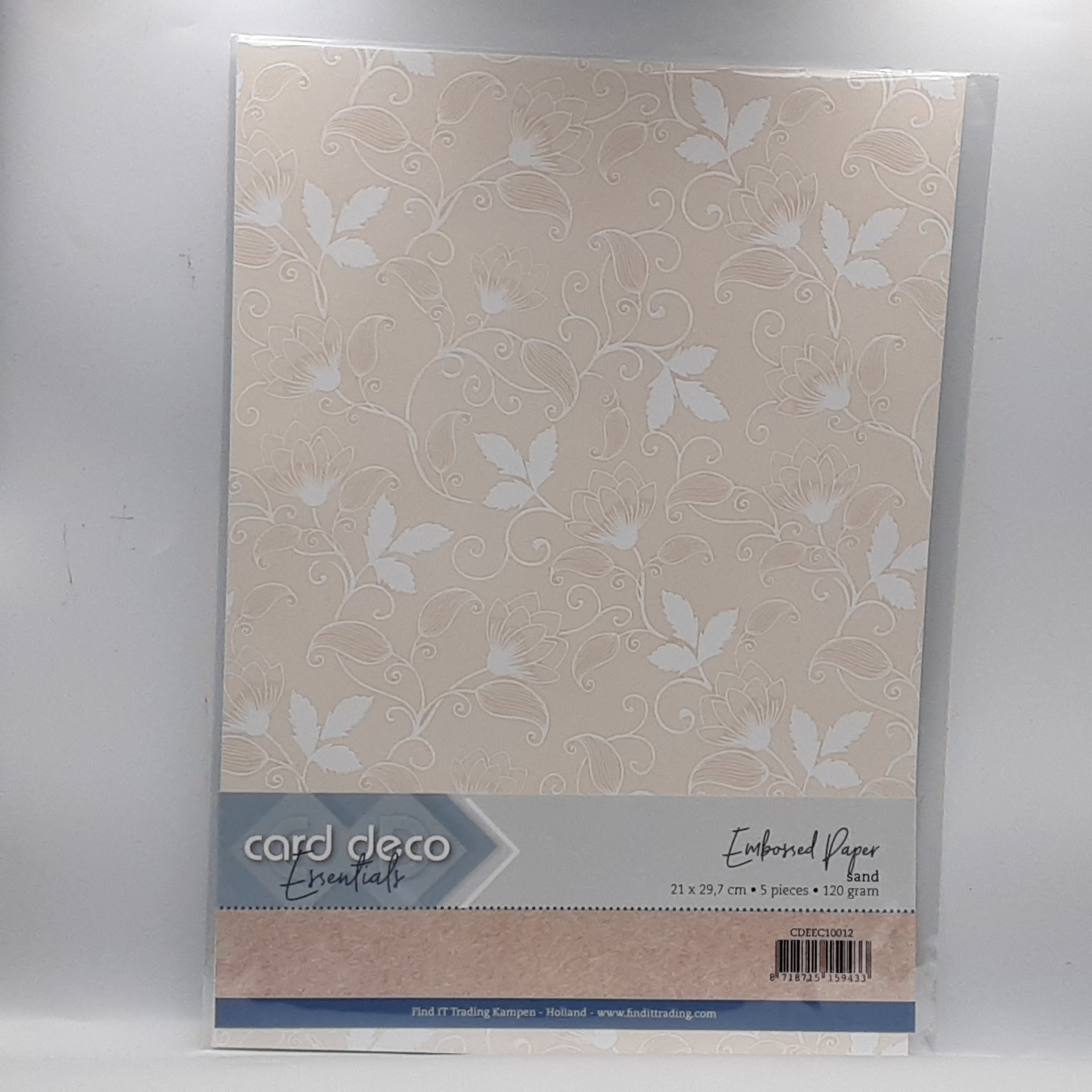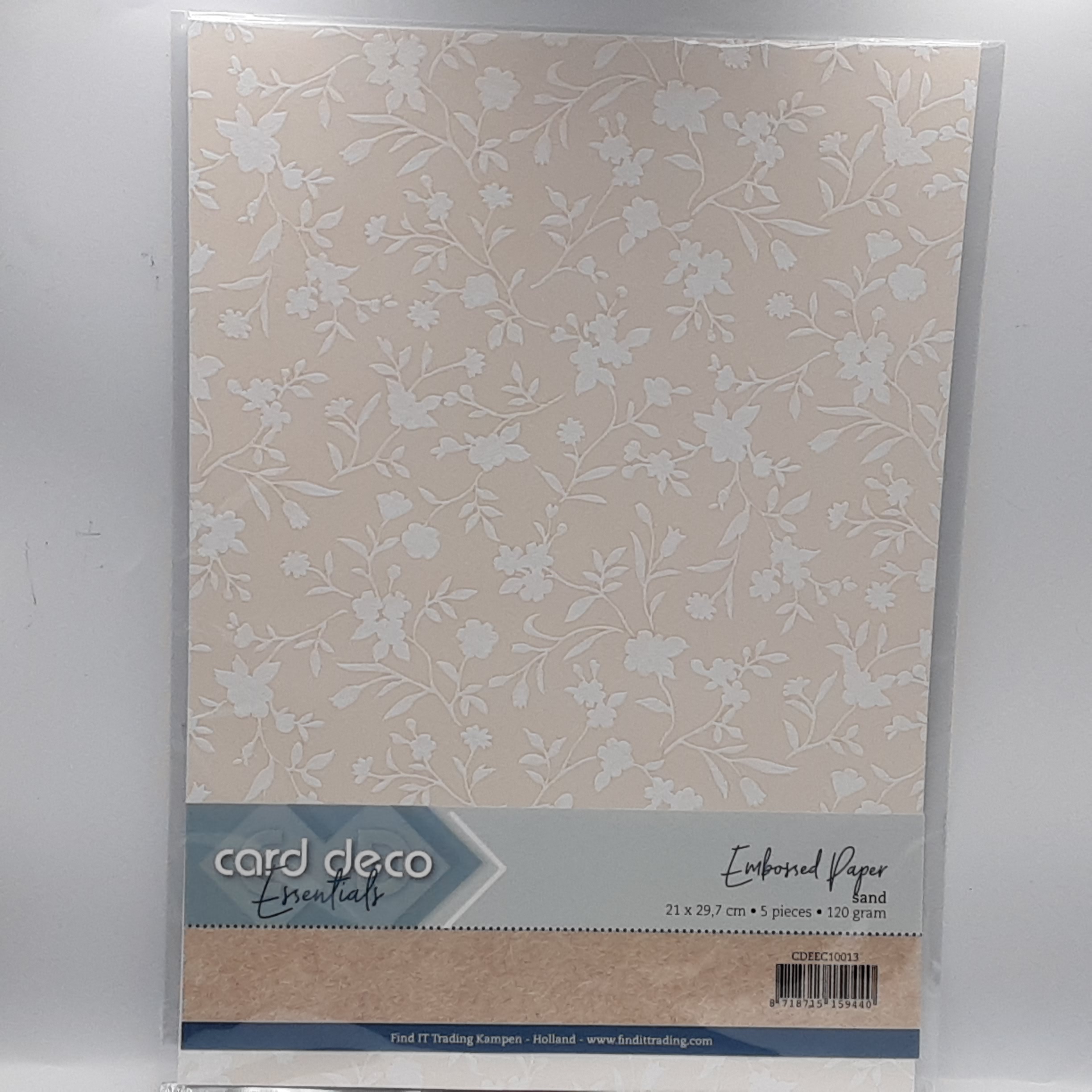 5 vel A4 embossed papier in zandkleur , met wit embossed dessin . 120 grams