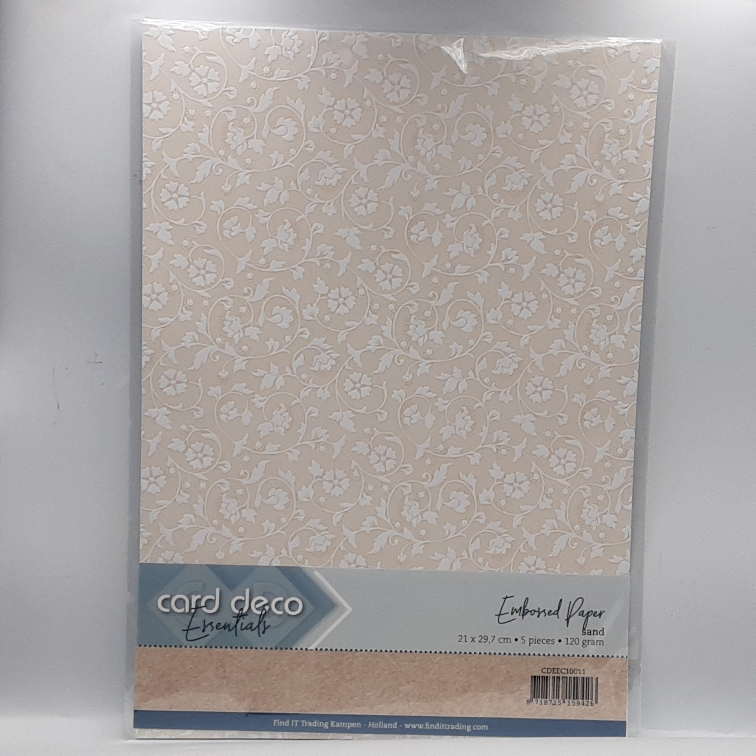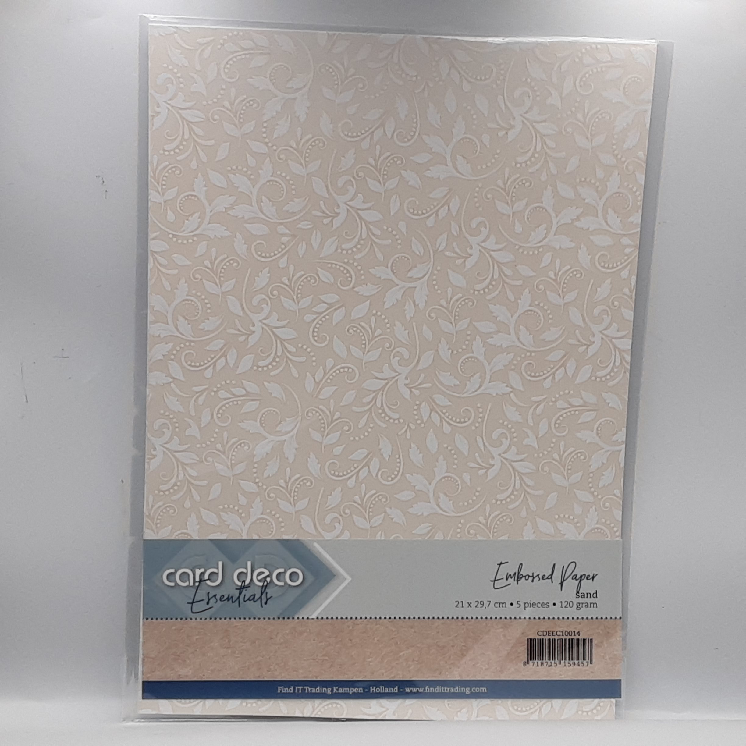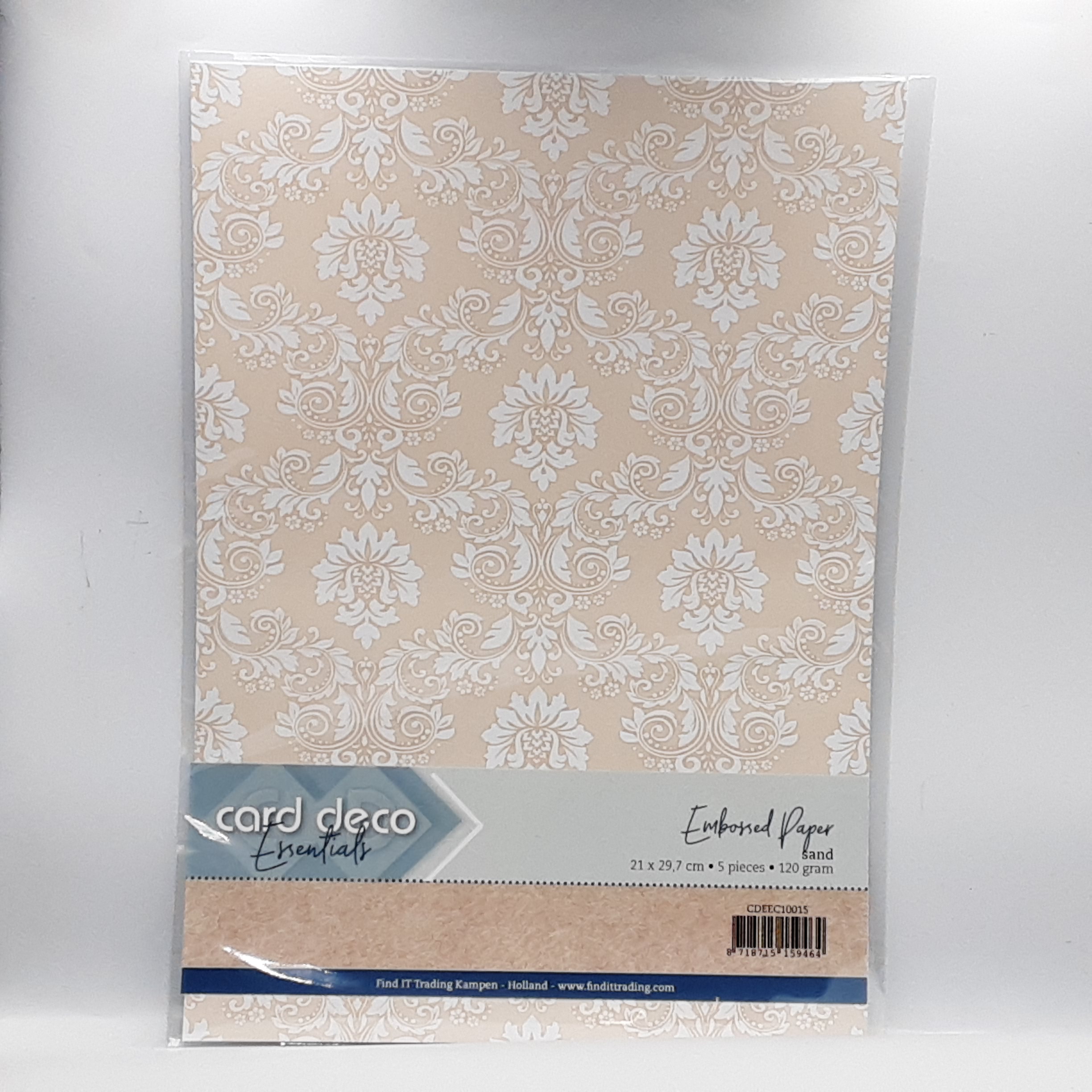 5 vel A4 embossed papier in zandkleur , met wit embossed dessin . 120 grams