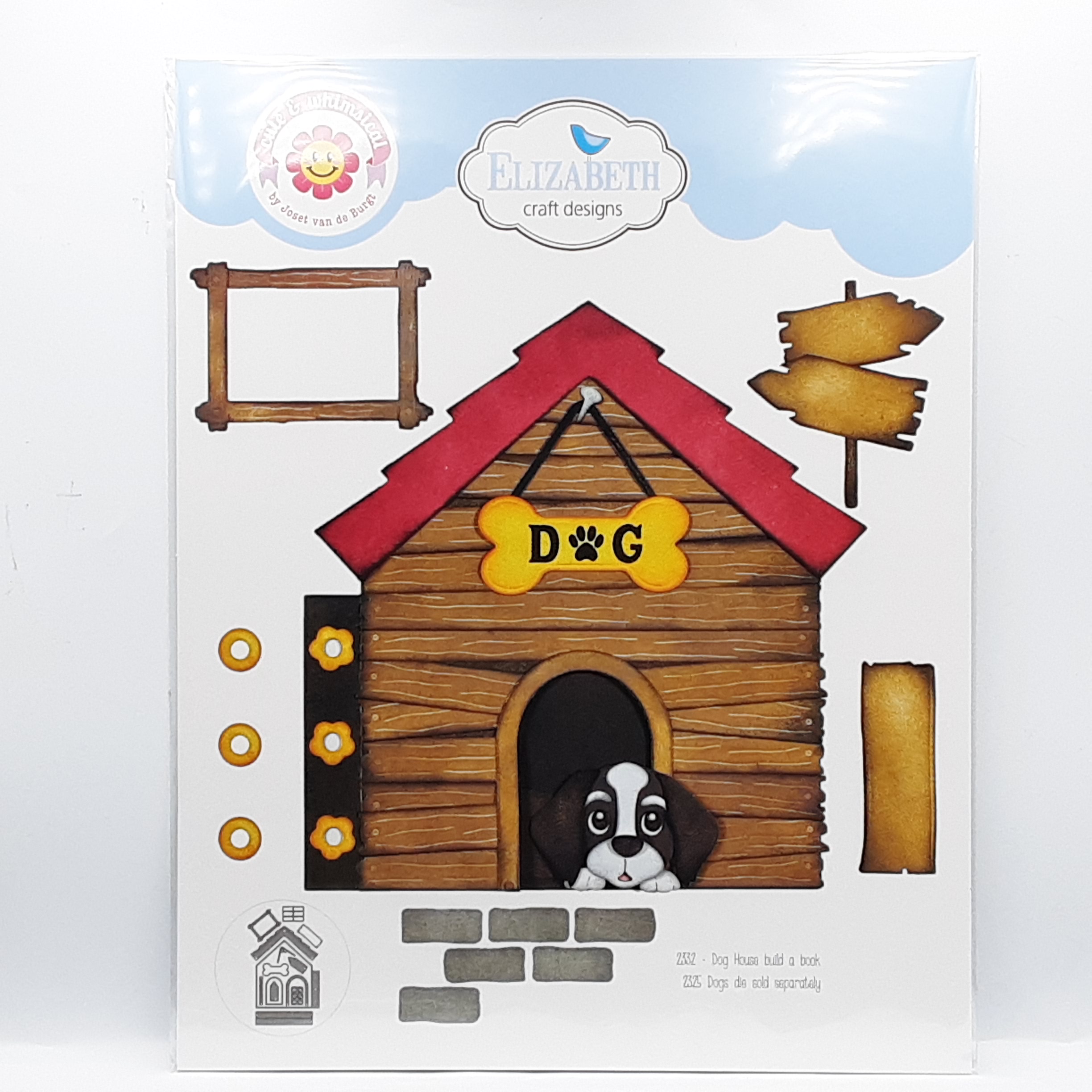 Stansmal set van een hondenhok met accessoires, het hondenhok kan verwerkt worden als album
