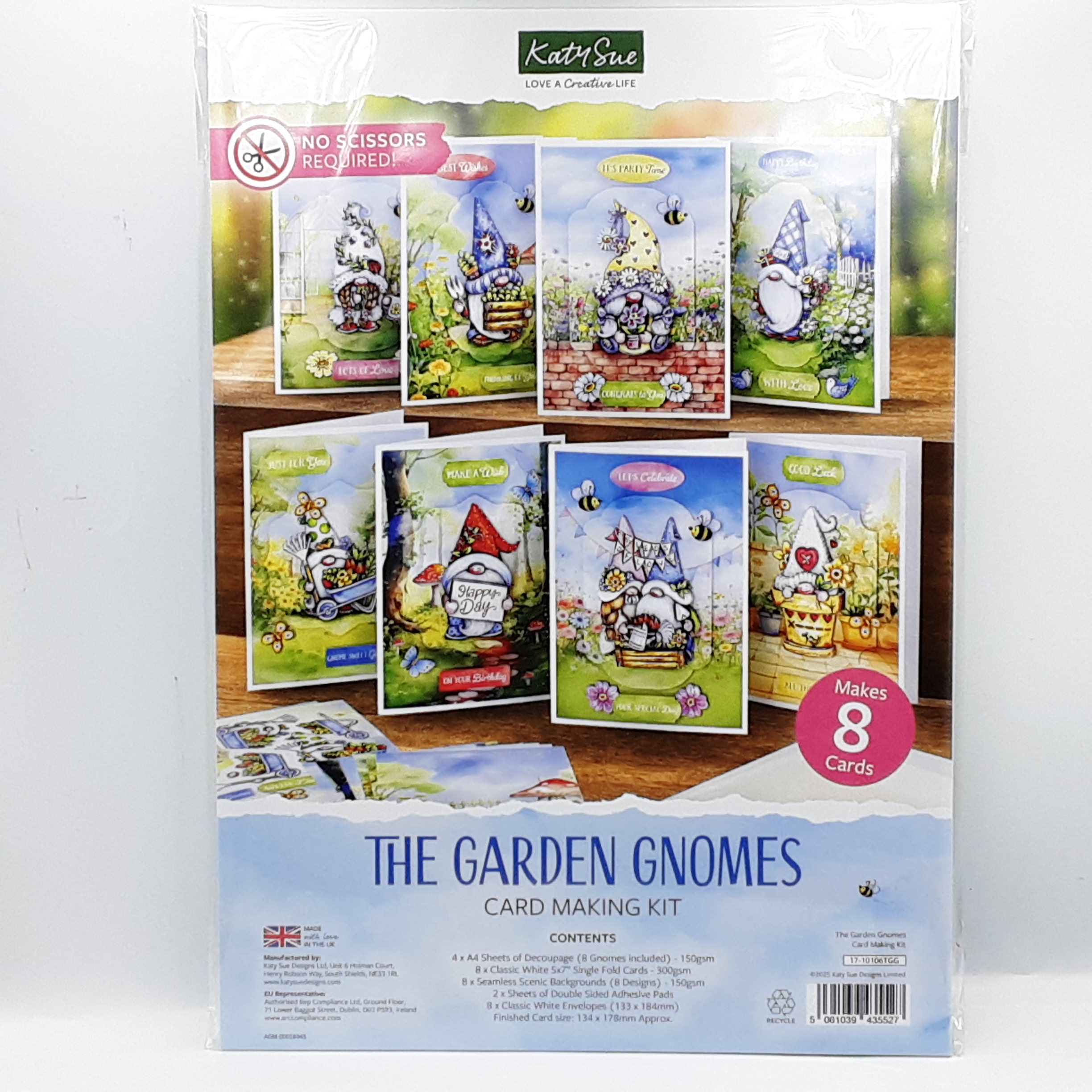 Compleet pakket om 8 kaarten te maken, inclusief enveloppen Gnoompjes in de tuin