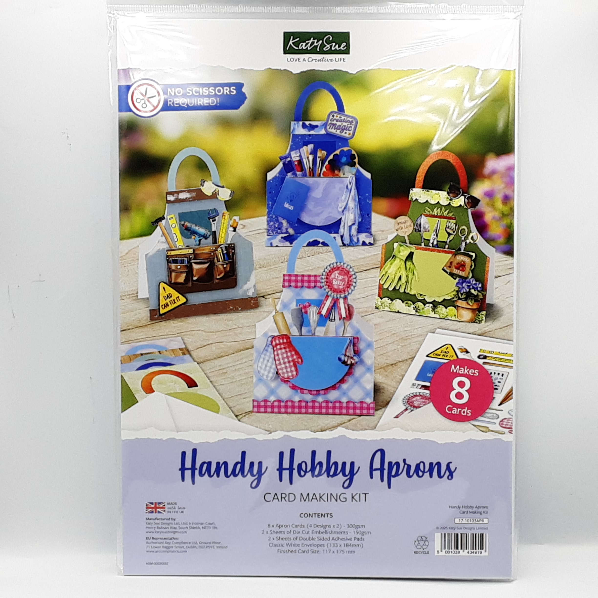 Compleet pakket om 8 kaarten te maken, inclusief enveloppen Kaarten in de vorm van een schortje , gevuld met bakgereedschap , tuin , schilder of timmermangereedschap