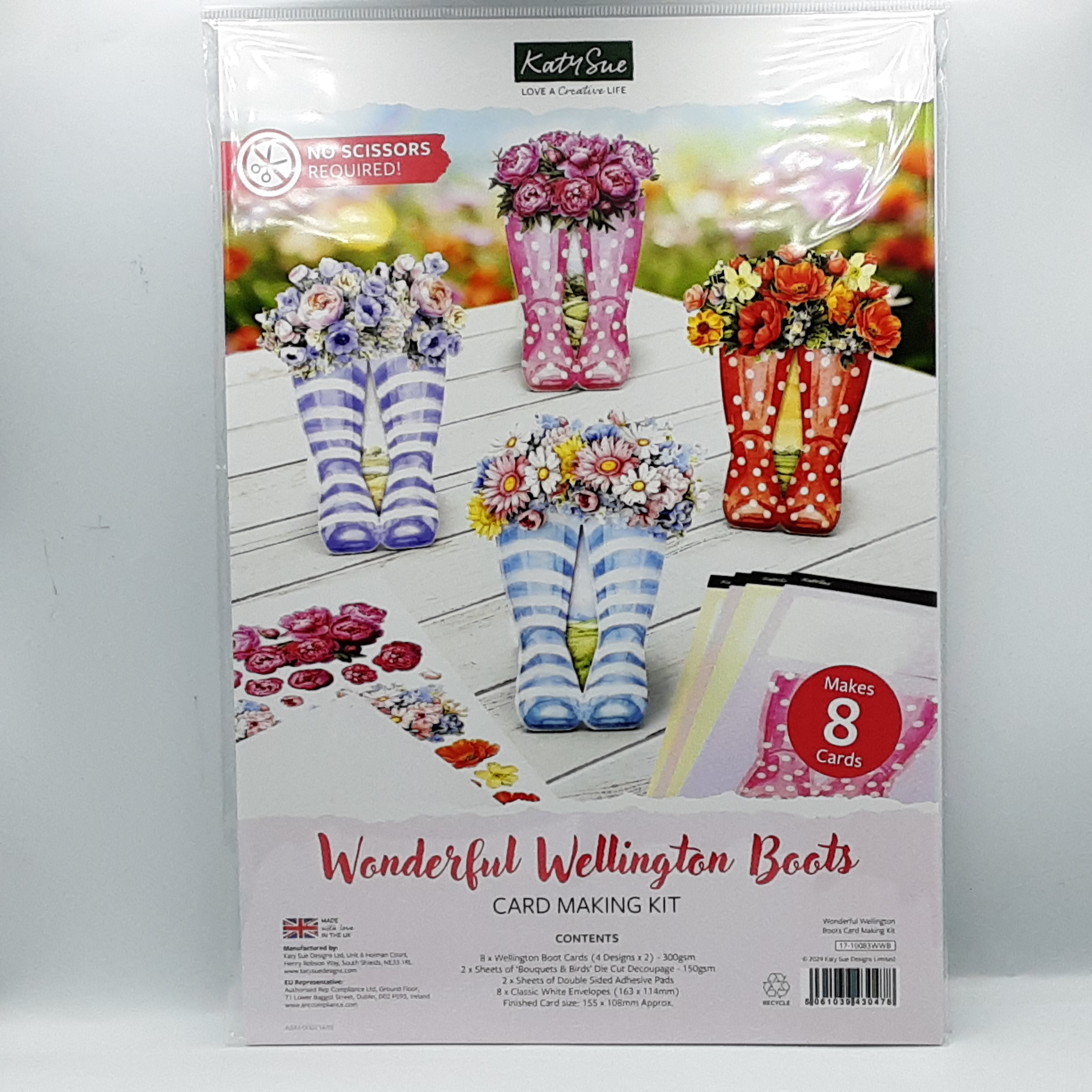 Compleet pakket om 8 kaarten te maken, inclusief enveloppen Leuke kaarten in de vorm van laarsjes , gevuld met bloemen