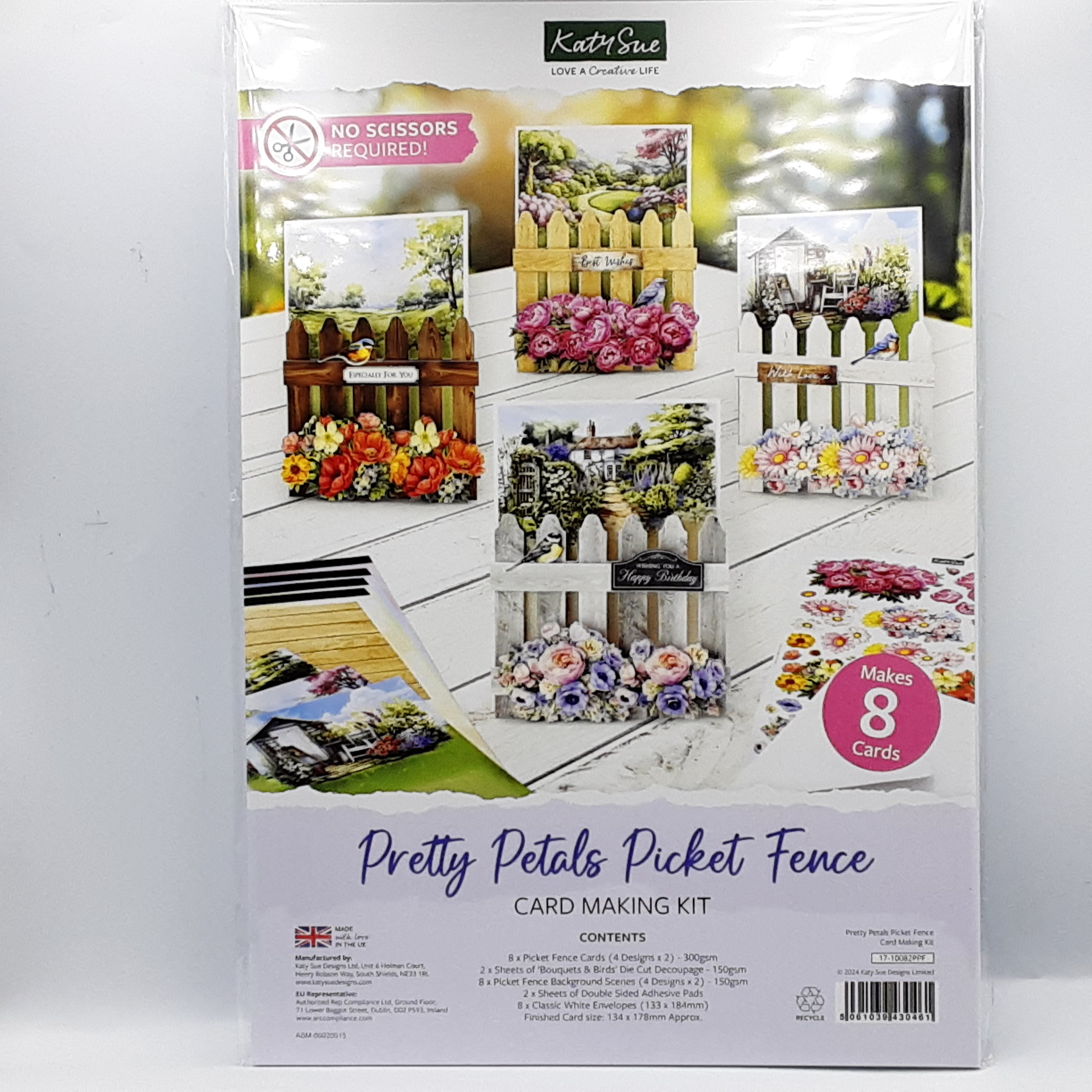 Compleet pakket om 8 kaarten te maken, inclusief enveloppen Kaarten met schitterende achtergrond, hekjes en bloemen