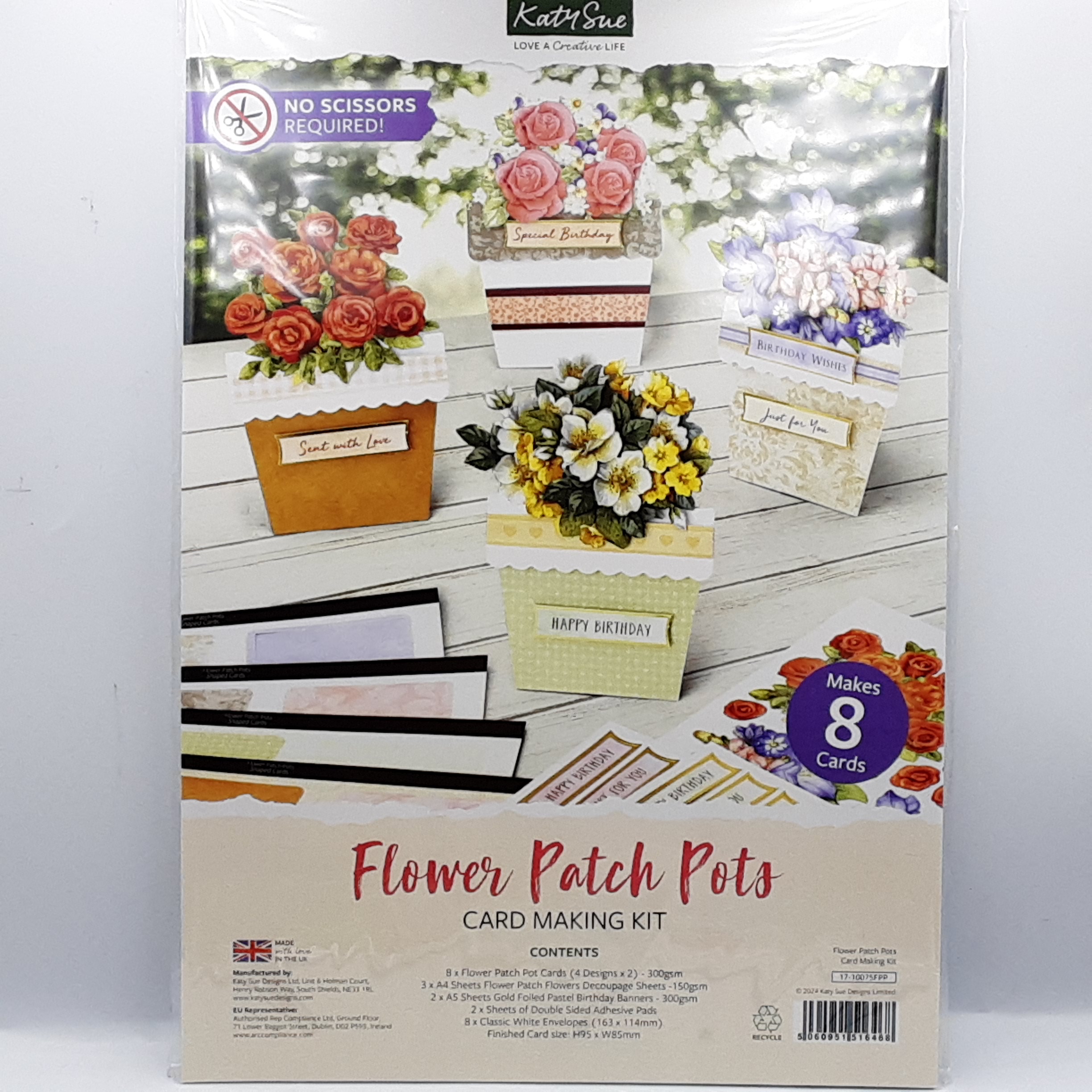 Compleet kaartpakket voor 8 kaarten, inclusief enveloppen met thema bloempotten met bloeiende bloemen