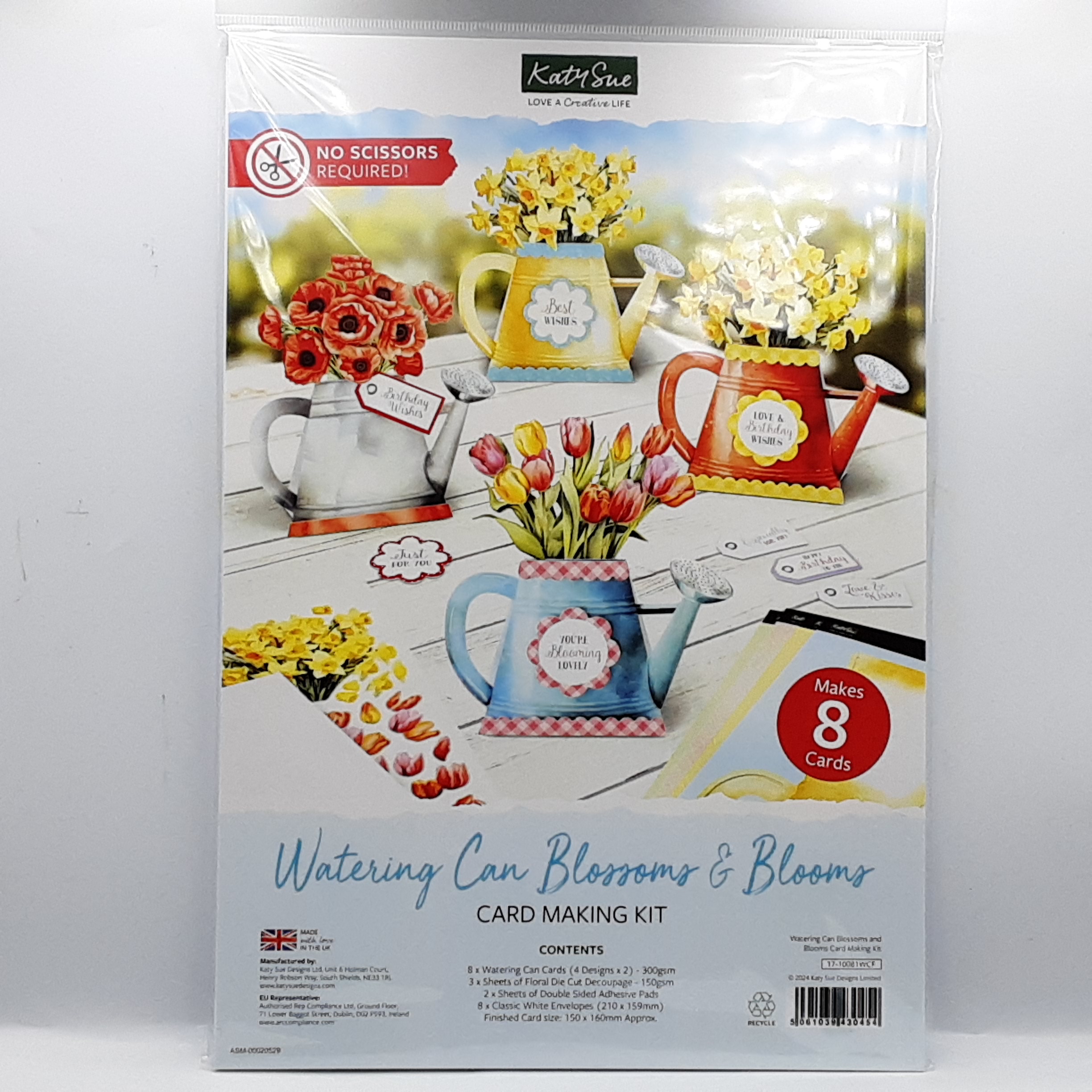 Compleet kaartpakket voor 8 kaarten, inclusief enveloppen met thema watergieter met bloemen