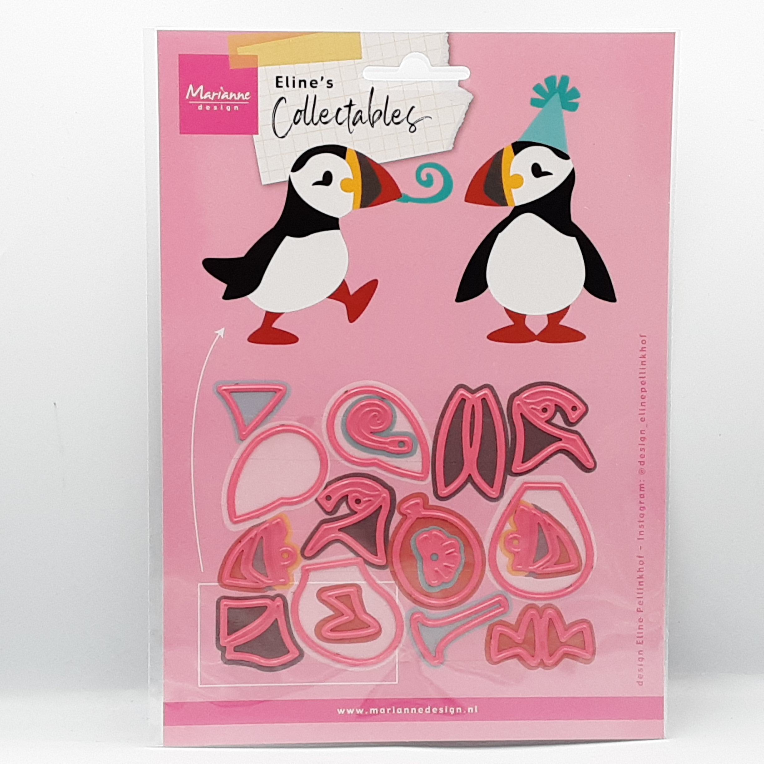 Stansmal set met papegaaiduikers met feesthoedje om op te bouwen