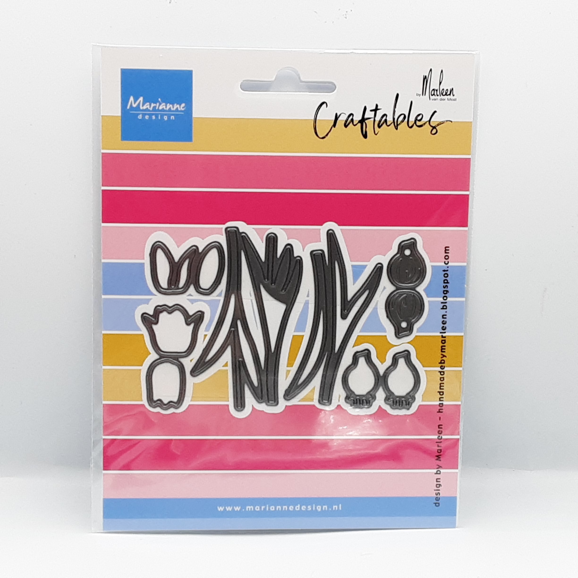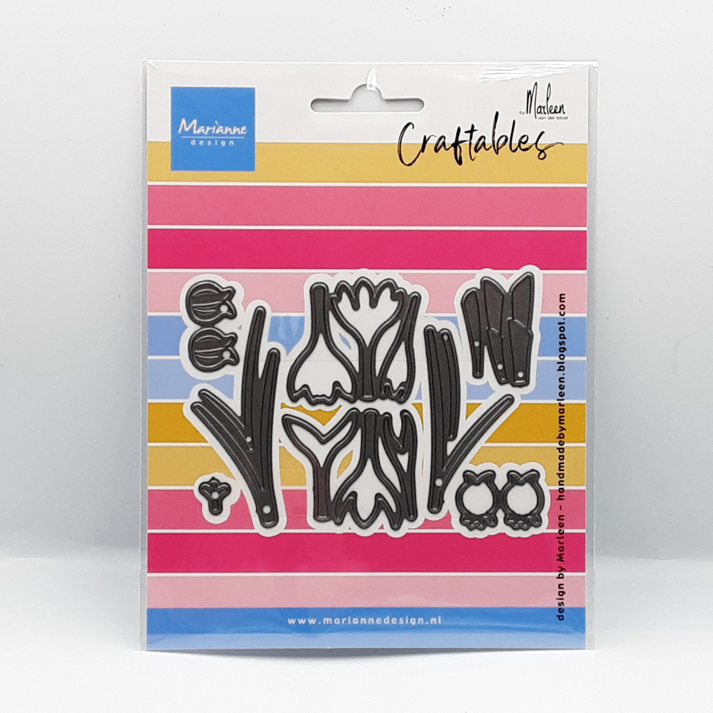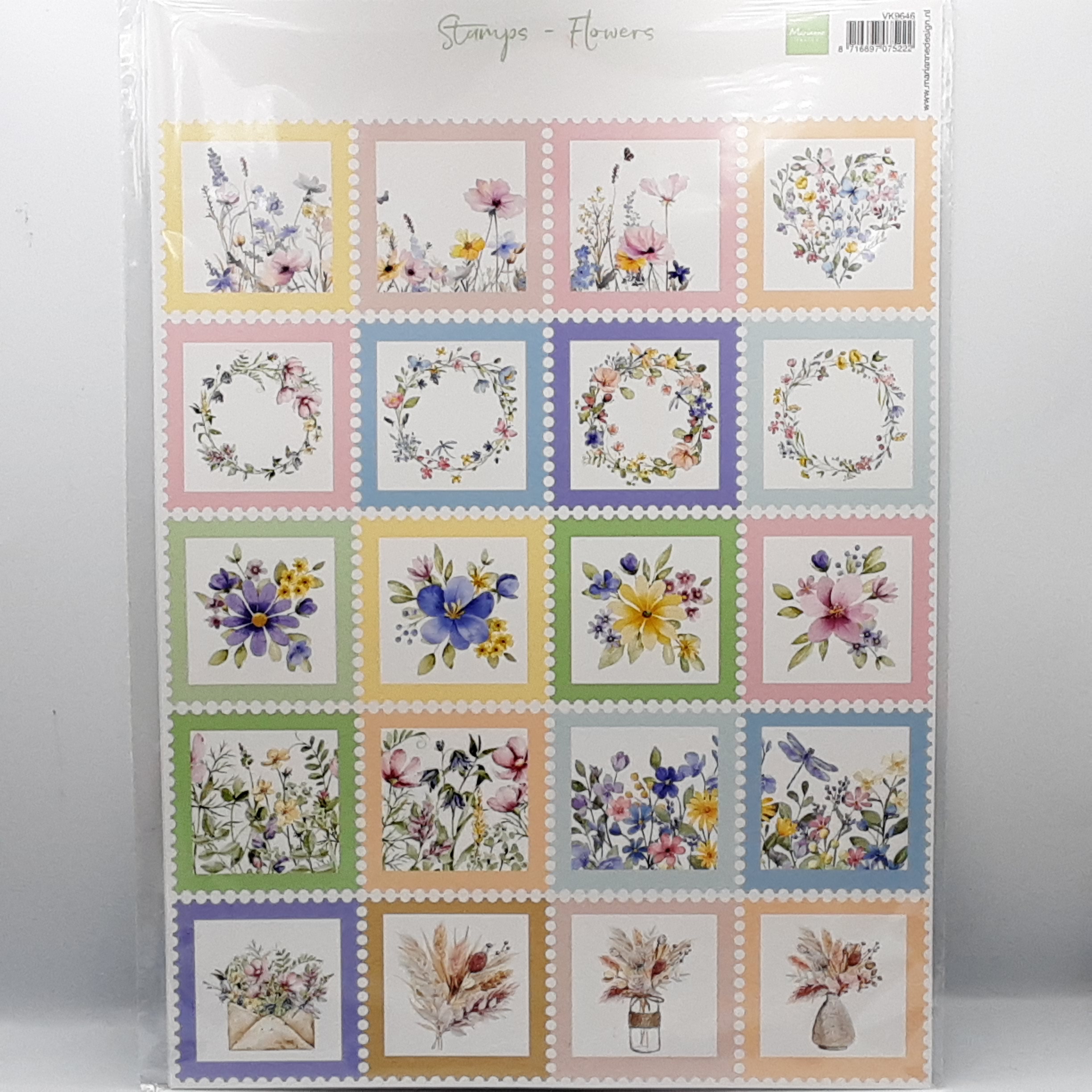 Knipvel vol vierkante postzegels met bloemen, passen in de creatables stencil stamp set