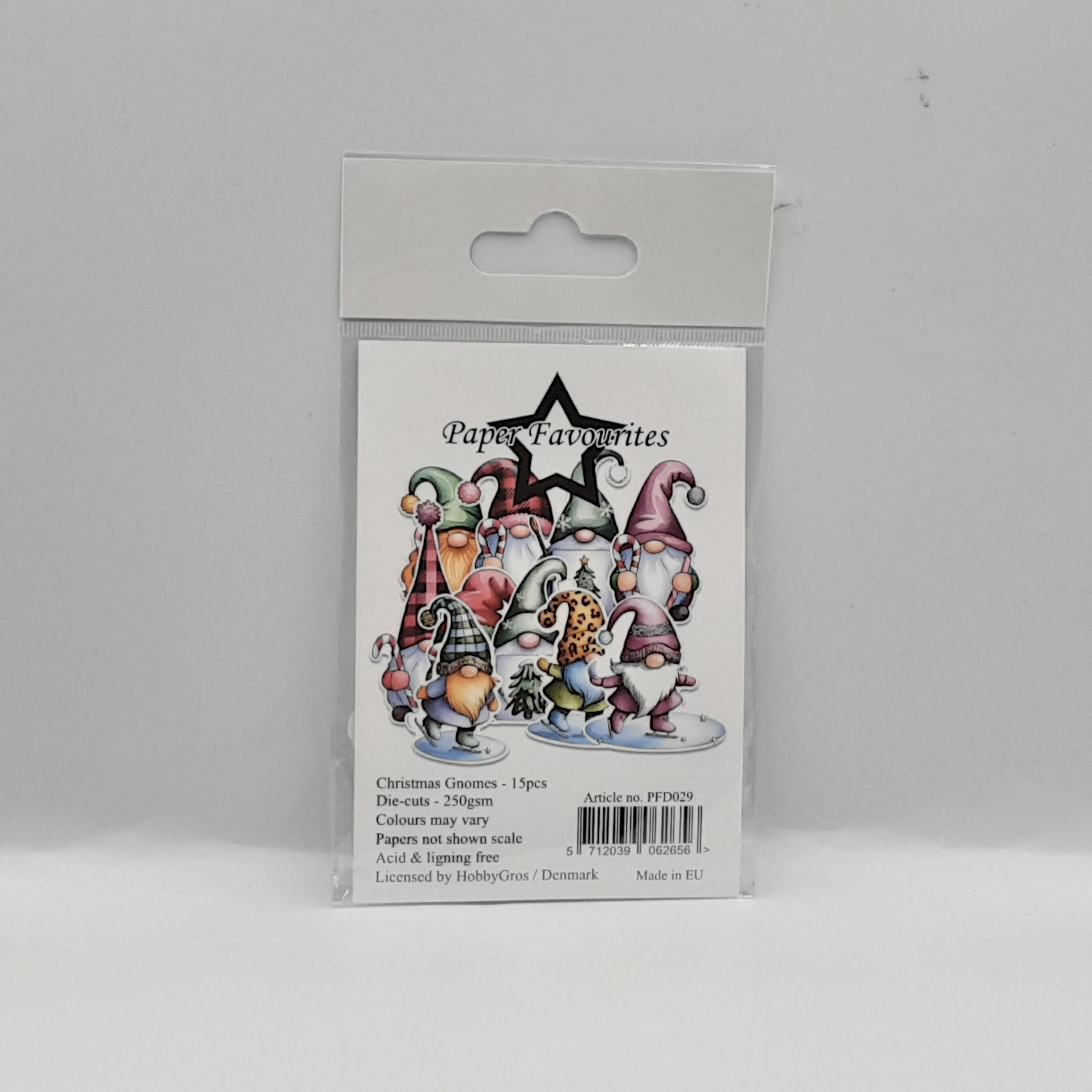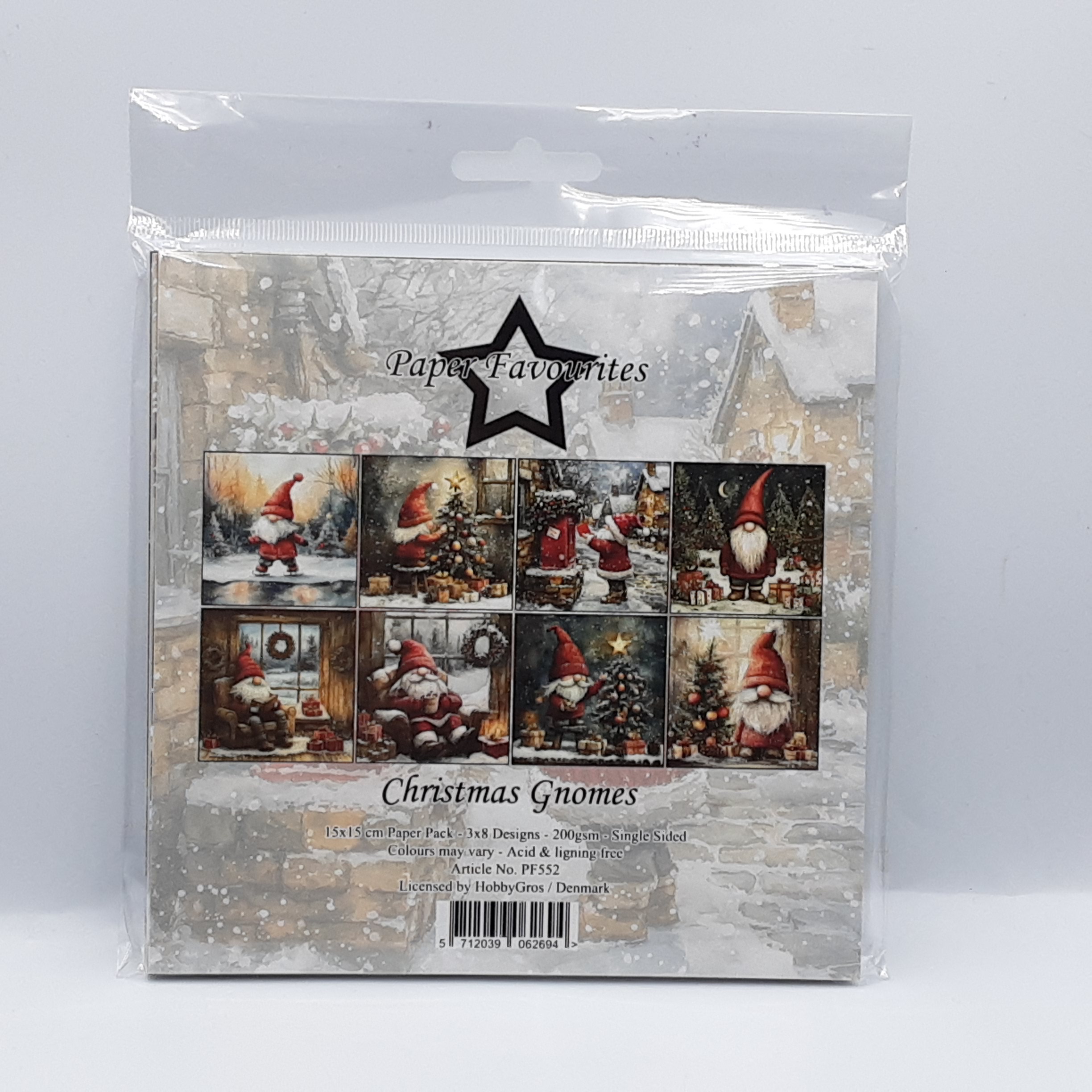 Vierkant paperpack met 3 x 8 designs met kerst gnomes in rode tinten Enkelzijdig bedrukt op 200 grams papier