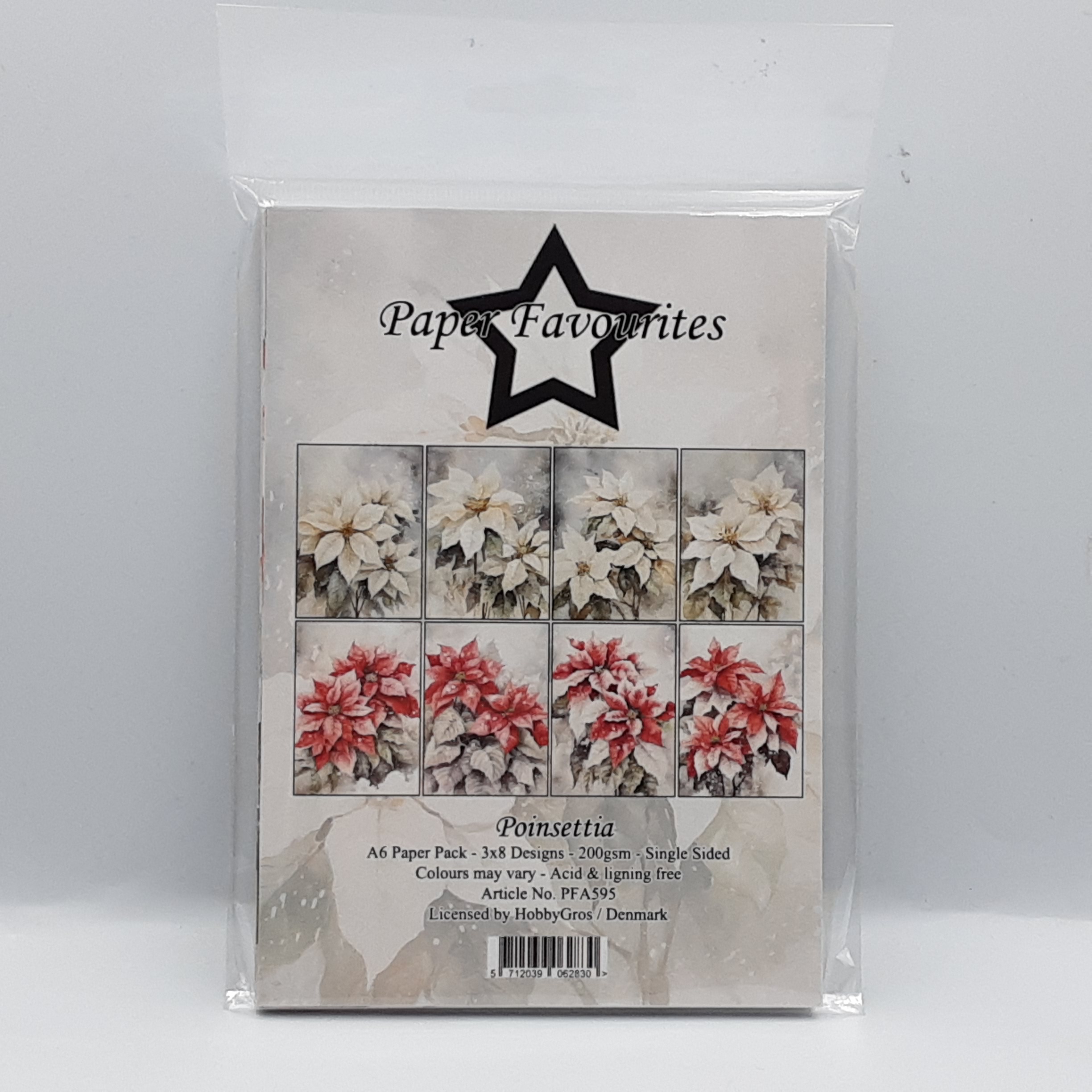 A6 paperpack met 3 x 8 designs met rode en witte kerstrozen Enkelzijdig bedrukt op 200 grams papier