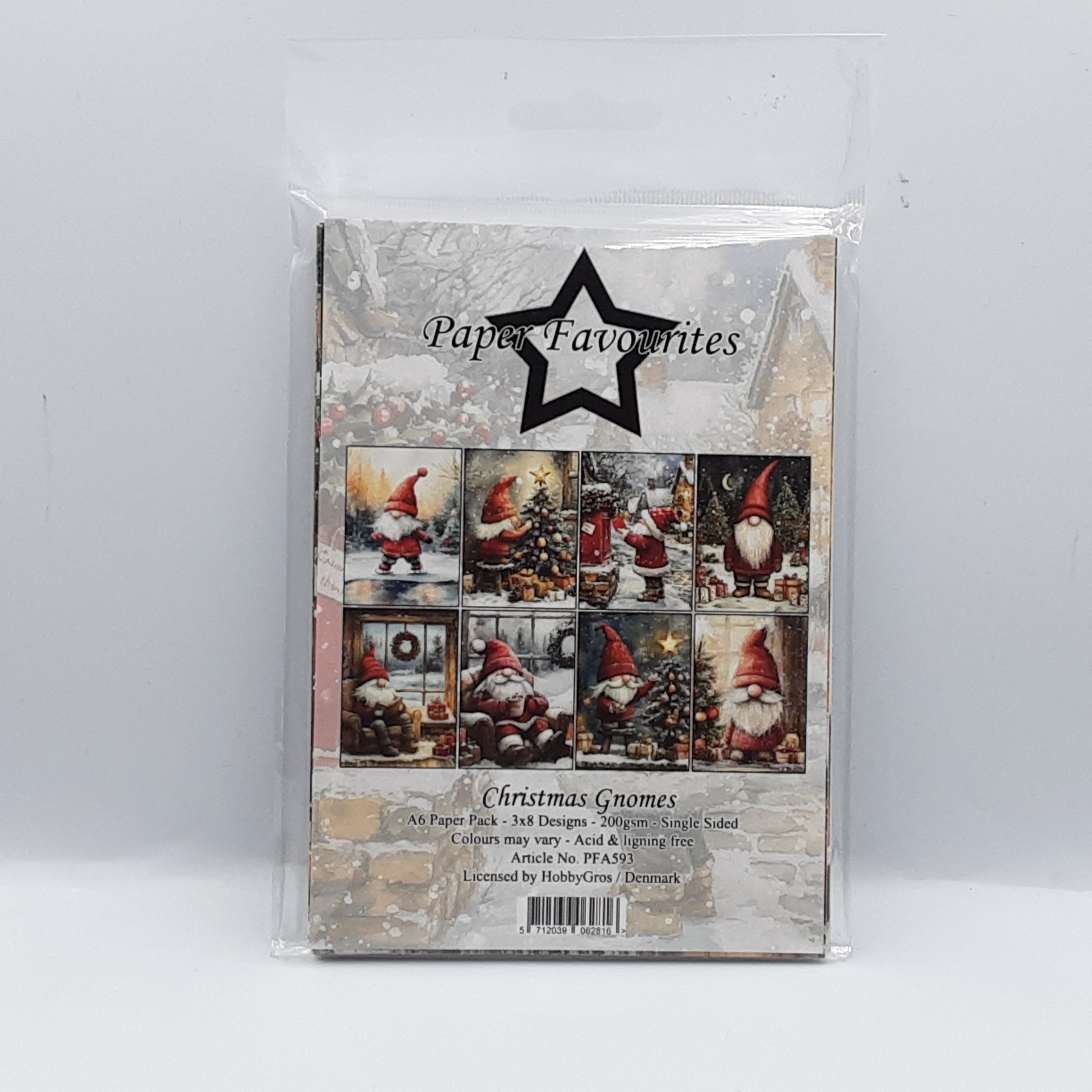A6 paperpack met 3 x 8 designs met nostalgische gnomes in rode tinten Enkelzijdig bedrukt op 200 grams papier