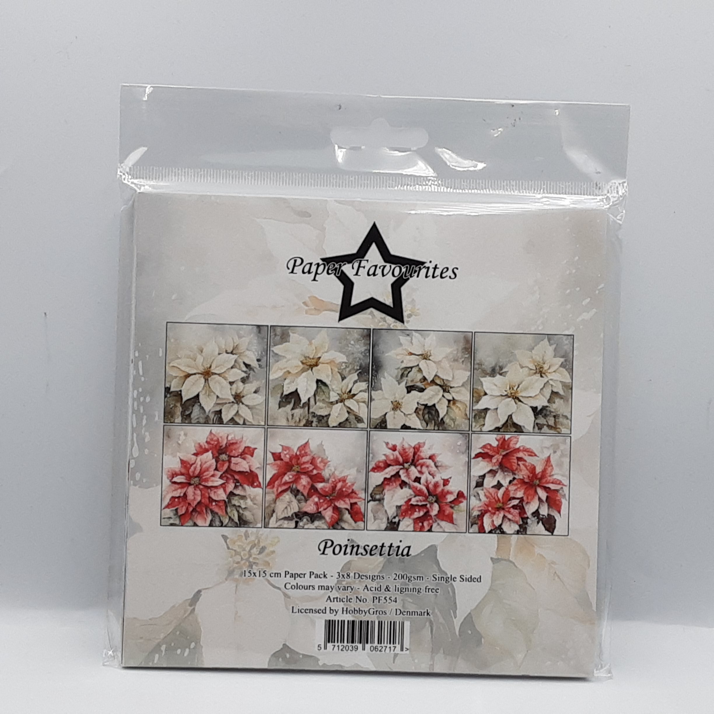 Vierkant paperpack met 3 x 8 designs met rode en witte kerstrozen Enkelzijdig bedrukt op 200 grams papier