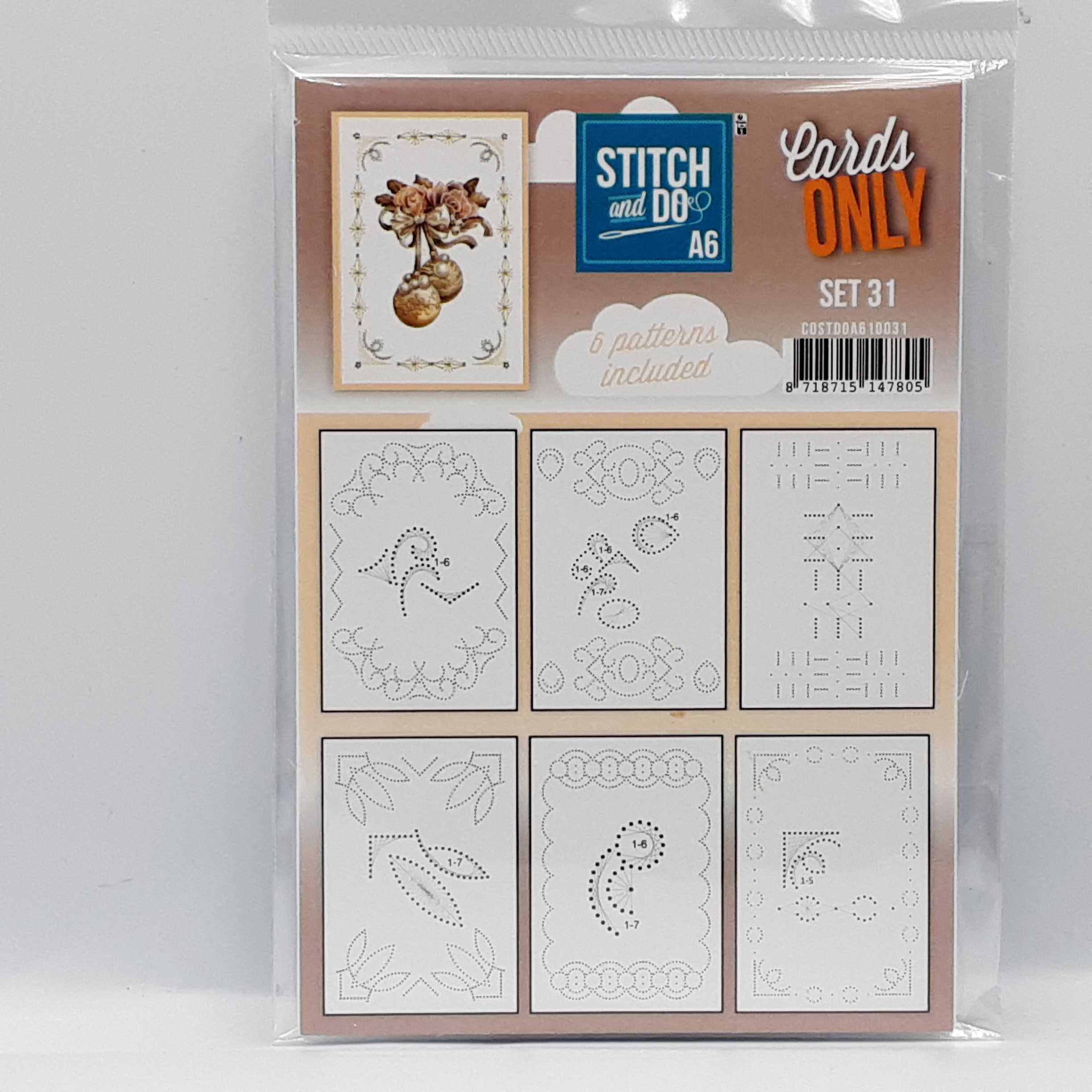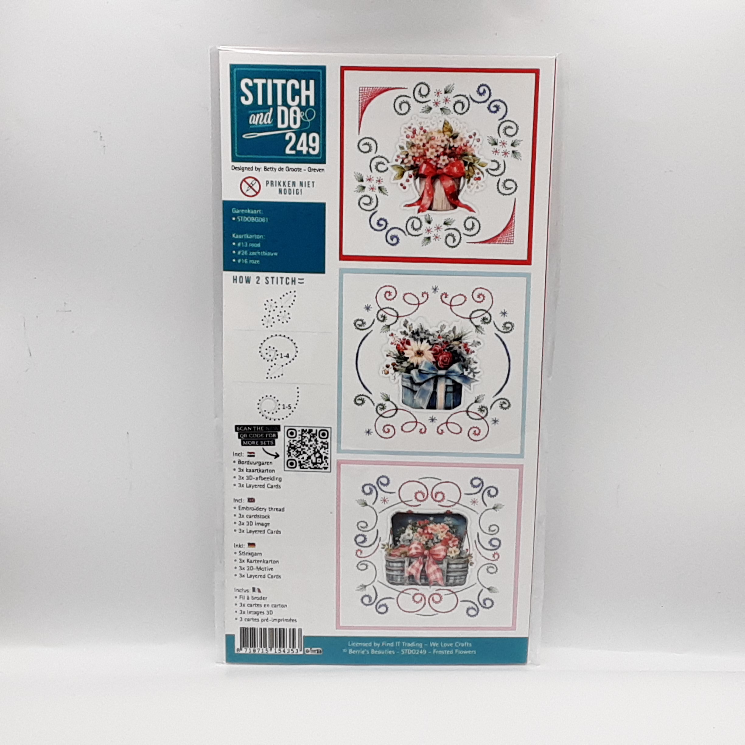Compleet pakket voor 3 borduur kaarten inclusief kaartkarton, voorgeprikte oplegkaarten, borduurgaren en knipplaatjes