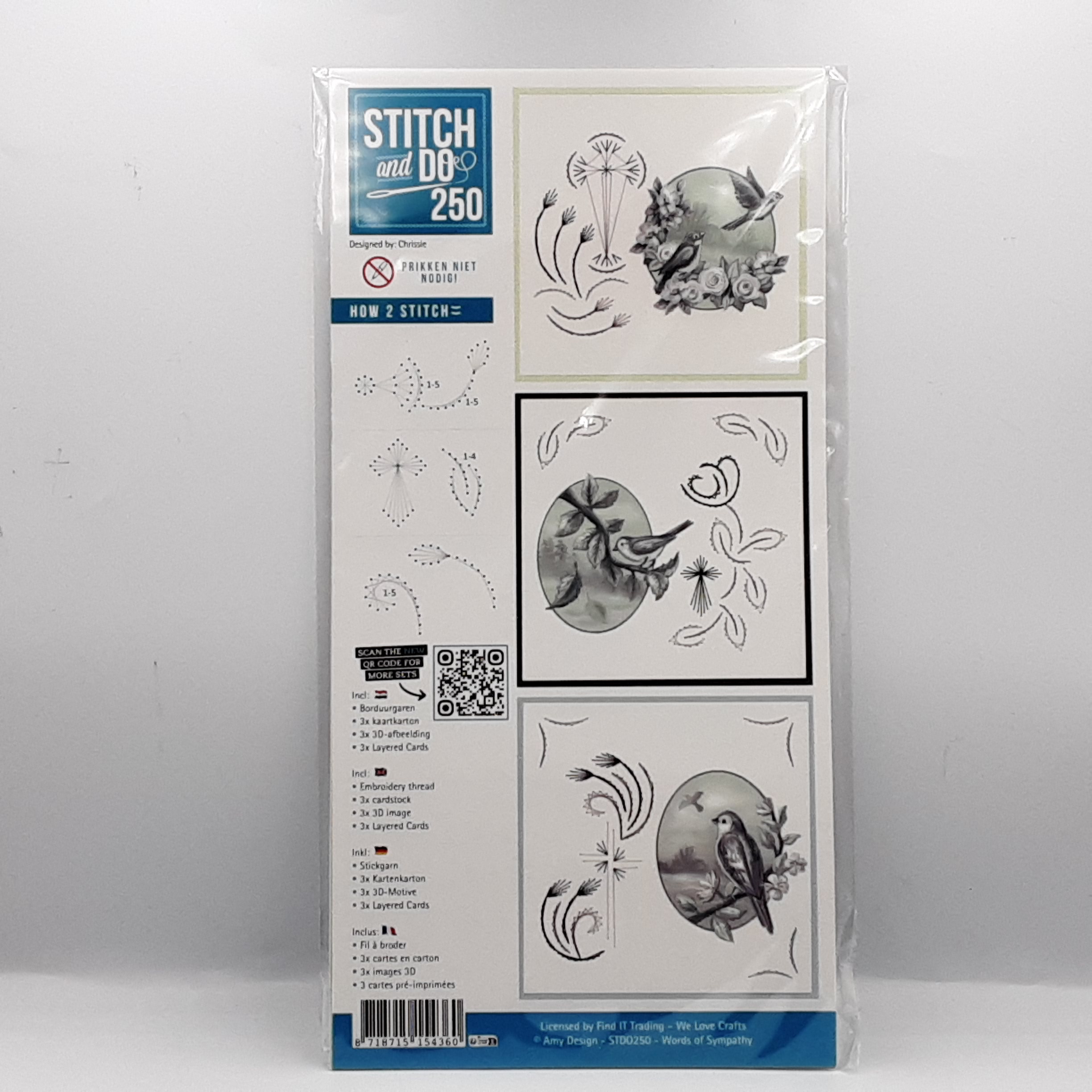 Compleet pakket voor 3 borduur kaarten, inclusief kaartkarton , voorgeprikte oplegkaarten, garen en 3D knipplaatjes Speciaal voor condoleance