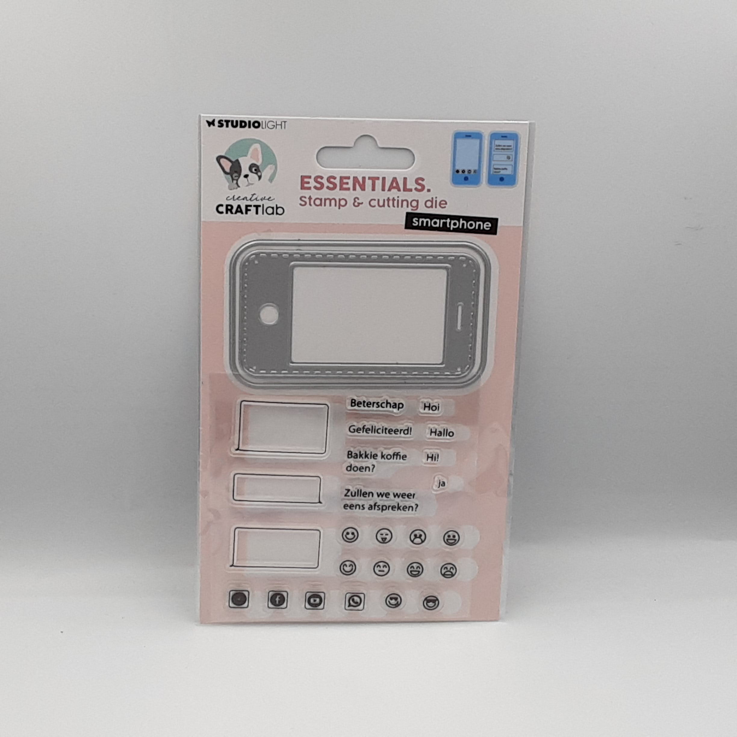 stansmalletje van een smartphone met stempeltjes voor tekstjes , emoticons en apps