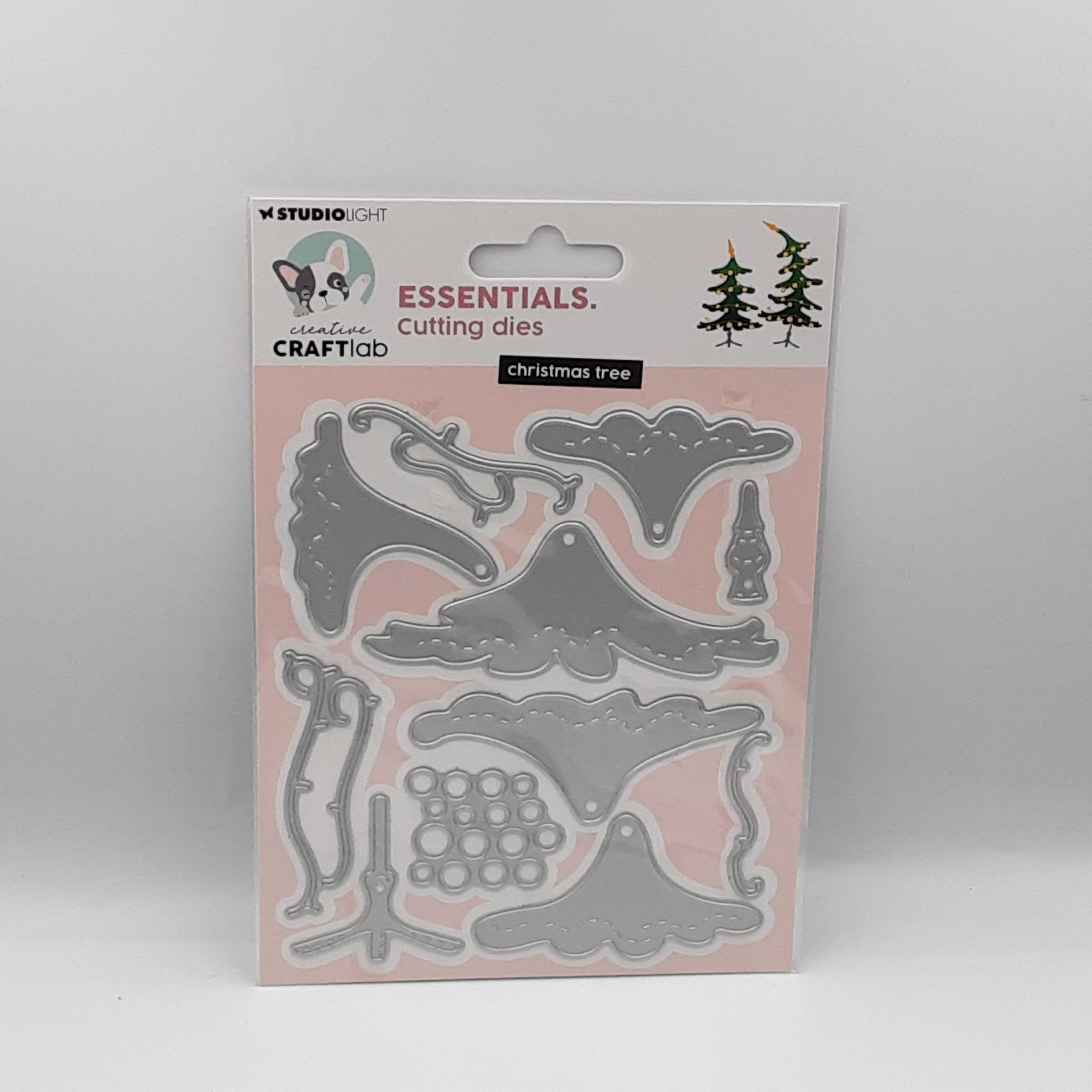 11-delige set stansmallen om verschillende soorten kerstbomen te maken , met voet en kerstballen
