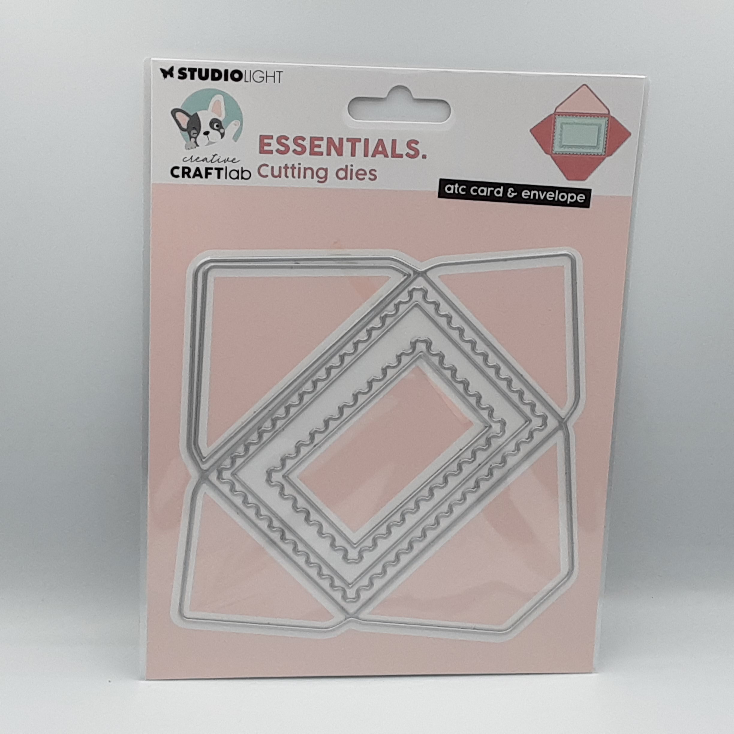 stansmal om een envelopje te maken met kaartje voor er in op ATC formaat , met postzegel rand